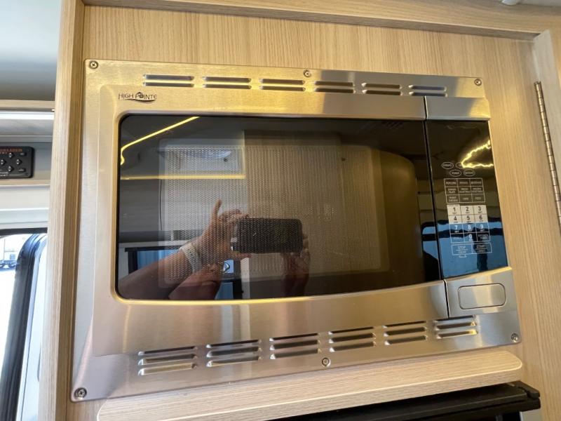 You will enjoy the two distinct living spaces with this motorhome as you travel to all of your favorite locations. The dinette in front serves for dining, plus sleeping as well when converted with the use of the front swivel captain's chairs for support. This is the perfect spot for when the grandchildren can come along. In back you will find a comfortable lounge area with a TV for inside entertainment, plus a Murphy bed easily converts the space into a bedroom that can be hidden away in the wall once morning arrives. The stainless steel convection microwave and the large pull out pantry makes creating your delicious meals easy.