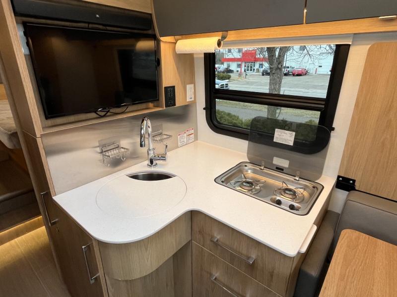 Change your expectations for travel with the Leisure Travel Wonder Class B+ gas motorhome! The Wonder might be compact, but it delivers unimaginable comfort and convenience with its space-saving features and innovative accommodations. Experience wonder and excitement each and every time you step foot into the stunning modern interior. There is room for all of your travel essentials with the curved soft-close overhead cabinet doors, the full-extension self-locking drawers, and the large bathroom storage. Each unit is constructed with vacuum-bonded aluminum-framed insulated contoured sidewalls and a domed roof with fiberglass exterior and a contoured entrance door with screen door and window for great views and fresh air. They also offer a 2,000W pure sine inverter, dual 6V AGM coach batteries, and more to allow you to keep traveling!