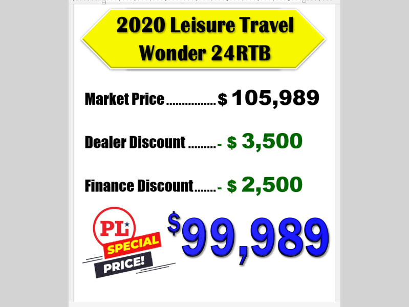 Used 2020 Leisure Travel Wonder 24RTB Motor Home Class B+