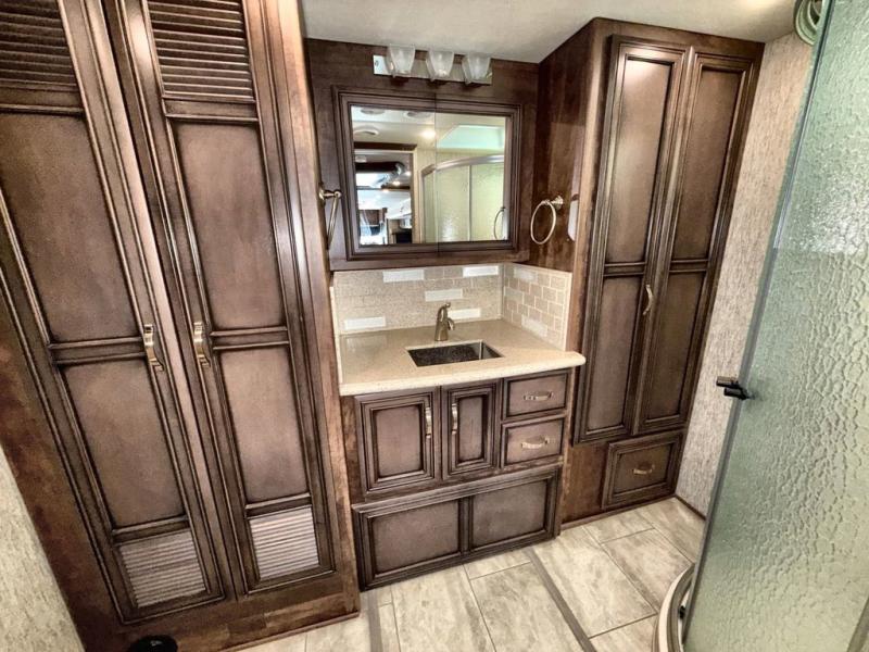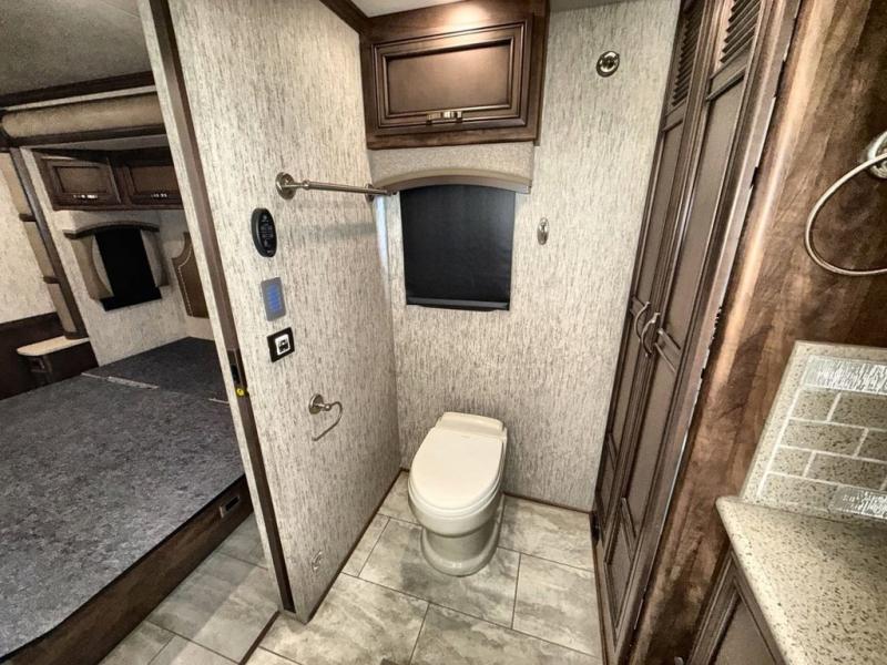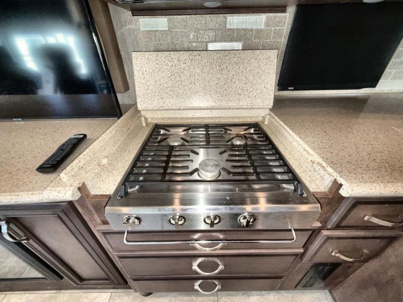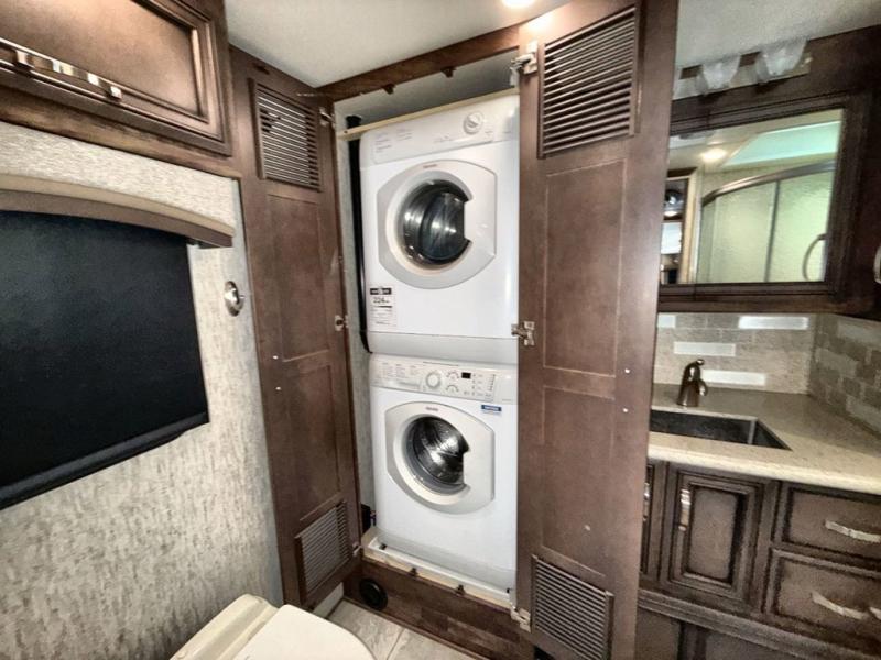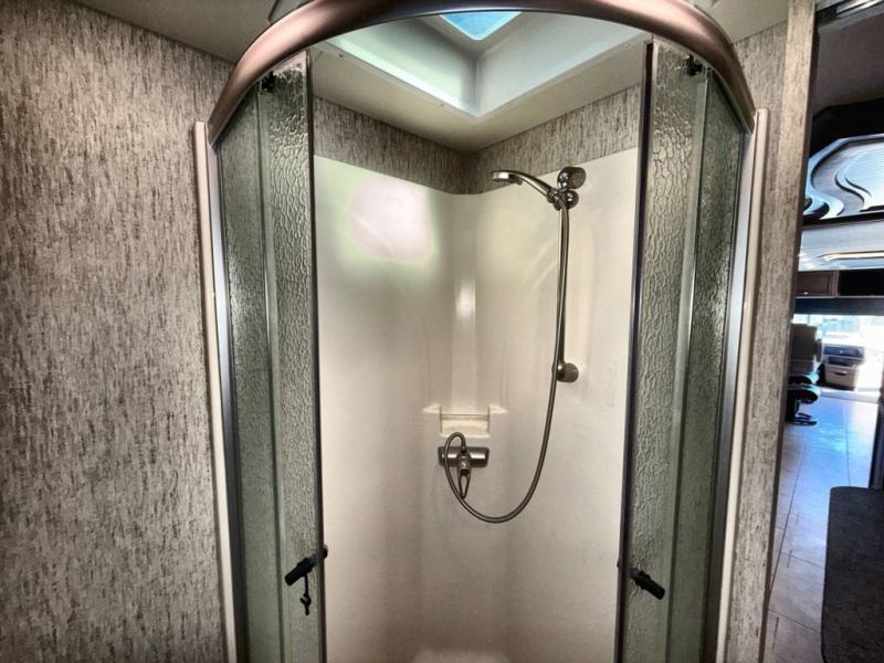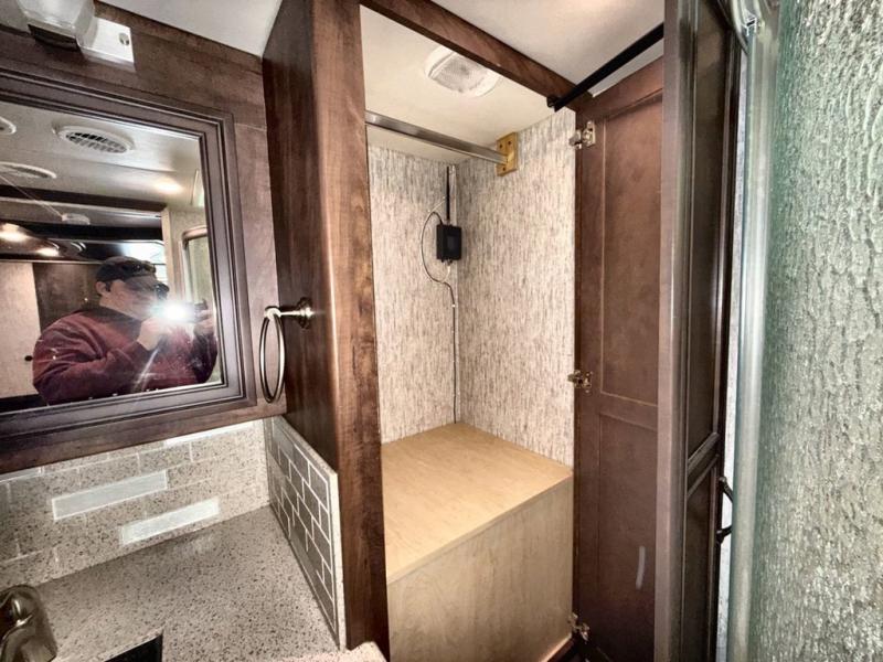You'll love the space you have in this motorhome thanks to the full wall slide and the bath and a half cuts down on waiting lines. Once you've reached your destination, relax on the jack-knife sofa and watch a show on the LED TV on power lift before heading out to check out a trail or two. Since you've worked up your appetite, the chef of the family can prepare dinner on the three burner range and you can enjoy it at the booth dinette. This unit features plenty of storage space space, including three wardrobes, overhead compartments, and a pantry for your dry goods.