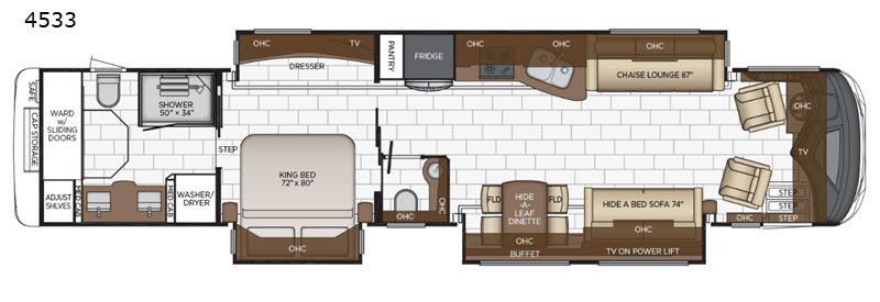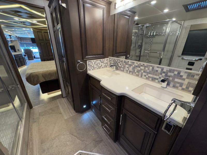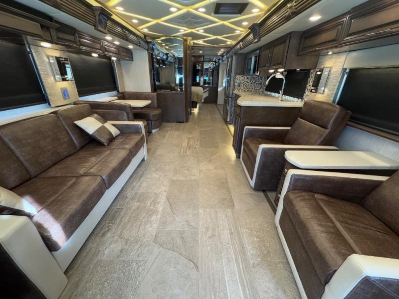 You will be creating your own classic beauty when you select Newmar's Mountain Aire Class A diesel motorhome for your traveling home. This luxury coach tells the world that you have arrived, and you have impeccable taste! Powered by a 500 Hp Cummins® engine atop a Freightliner or Spartan chassis you can go just about anywhere. They are also built on an ultra-durable STAR foundation for a quieter ride and come standard with the Comfort Drive adaptive steering with Passive Steer technology. Inside each model you will find an impressive living space including fantastic entertainment features like a retractable Samsung 50" 4K LED TV, a Bose 300 SoundTouch soundbar, and a Sony Blue-ray player. You will also love the appealing refreshed tile floor with radiant electric heat, and the elegant decorative touch of the designer feature ceiling. It's time you do traveling the right way with one of these Mountain Aire Class A diesel motorhomes!