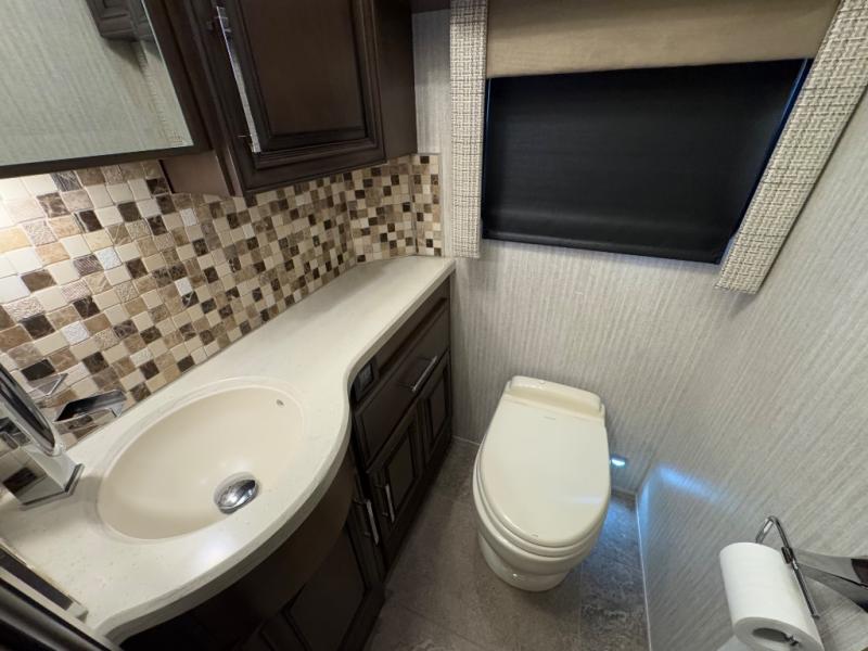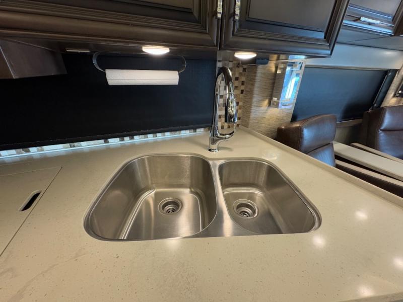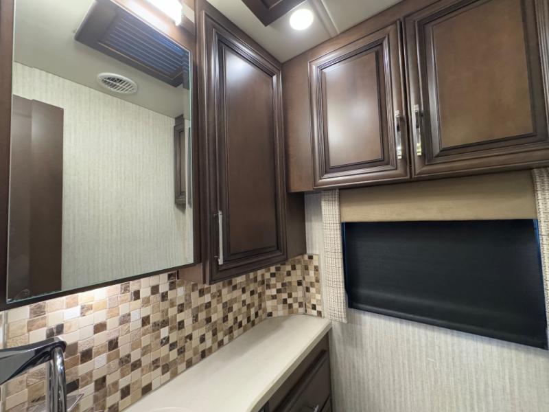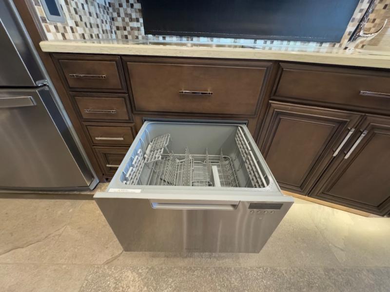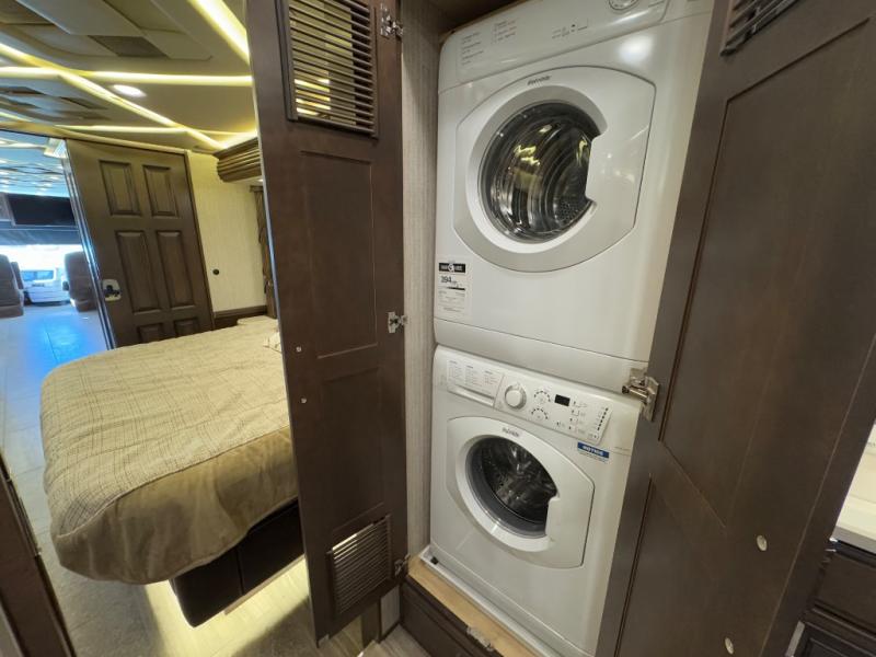 You can't go wrong traveling in this Mountain Aire diesel motorhome! There will be no excuse to not stay clean and fresh during your trip with the full rear bathroom featuring a 50" x 34" shower with a seat, a two sink vanity, a wardrobe with sliding mirror doors, adjustable shelves, a safe to keep your valuables hidden, and even a place to store your CPAP machine, plus there is a Splendid stackable washer/dryer for your linens to stay clean also. There's plenty of seating and sleeping space between the 82" chaise lounge sofa, the 74" hide-a-bed sofa, and the king-size bed in the private bedroom, plus the hide-a-leaf dinette with buffet allows you to dine, work, and play games. There are many more luxurious and convenient features to enjoy, plus options to add.