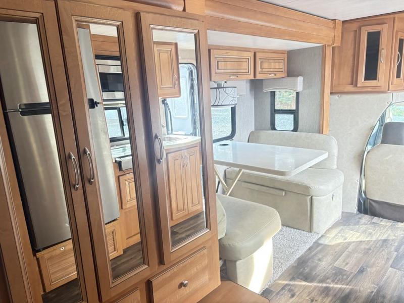 You're going to love stepping into this luxury class B+ motorhome that includes a full wall slide to provide you with the most interior space. Here, you'll find the booth dinette that is great for meal times and can also be converted into sleeping space for one to two people. The queen bed will give you a great night's rest after a day of traveling to your destination and the chef of the family can prepare a meal on the three burner range. This unit also includes an over-the-range microwave for quick meals that you are sure to appreciate. The full bath features a shower and a toilet, plus a vanity with a sink just like at home. Come see all this unit has to offer!