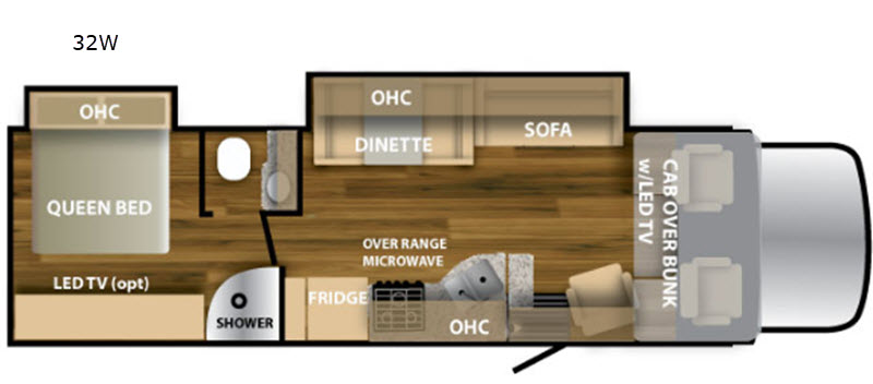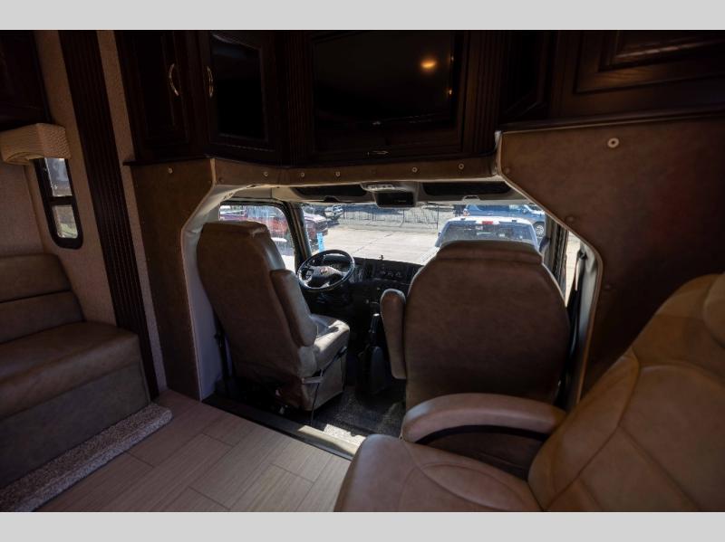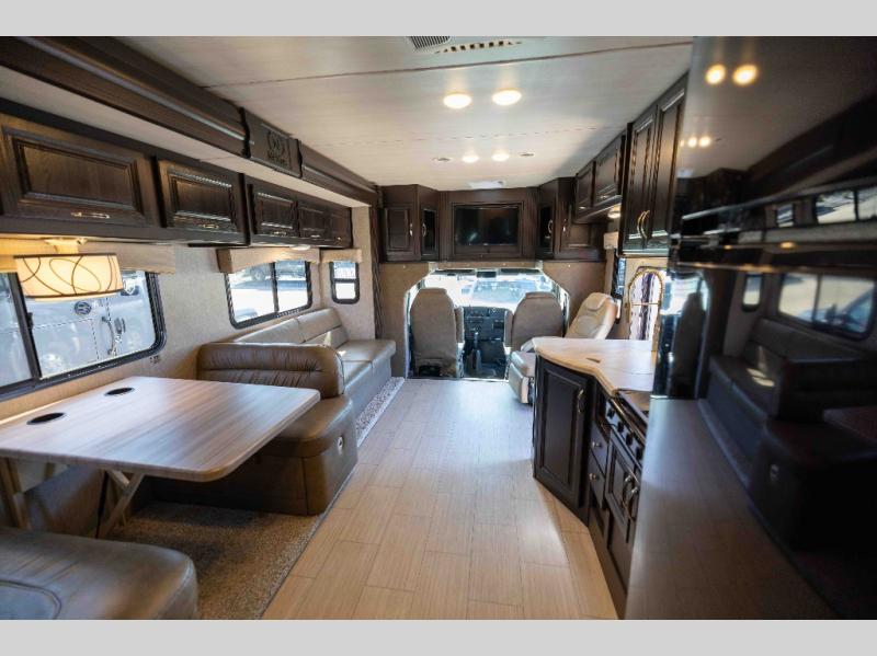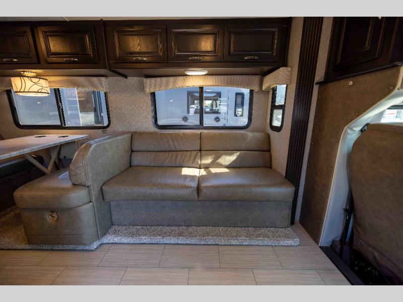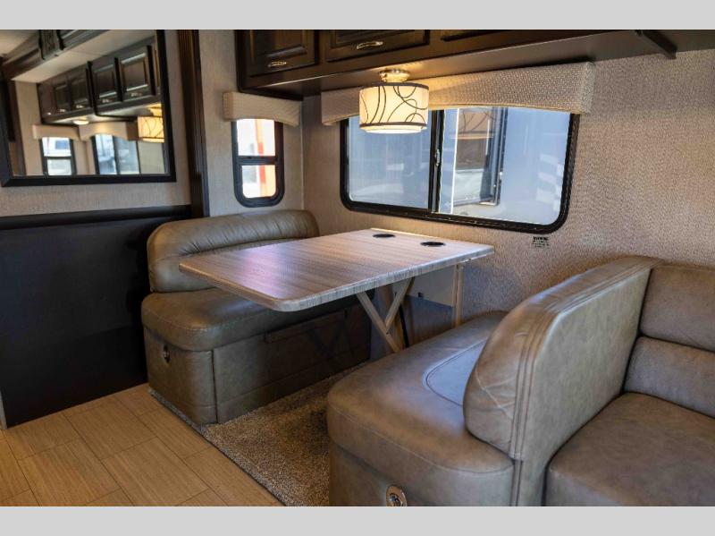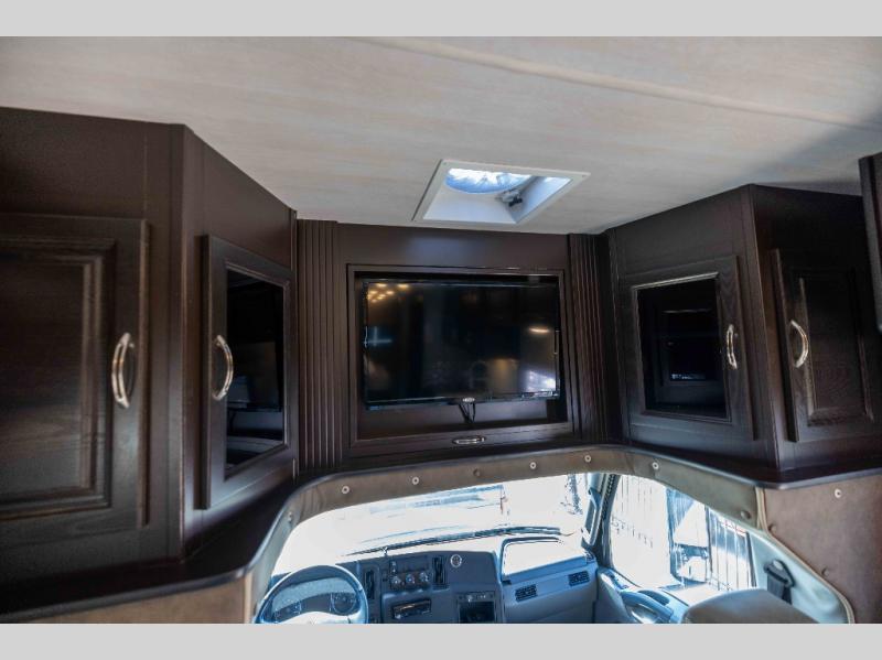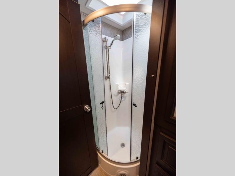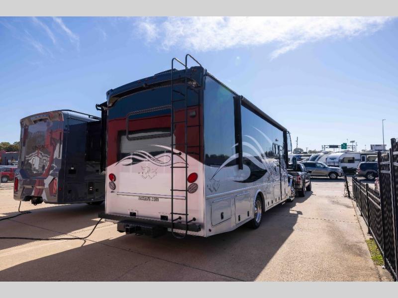 Make the journey just as comfortable and fun as the destination in one of these Wraith super C motorhomes by Nexus RV. You'll love the convenience of the touch screen stereo/CD player with USB and backup camera, Bluetooth and Sirius capabilities to stay connected while on the road and the power driver and passenger seats allow you to set your chair exactly how you want it. Each model includes a 7.5 cu.ft. refrigerator with a freezer, an over-the-range microwave, plus a stainless steel sink in the kitchen. The shower skylight provides you with more standing room as you get ready for your day and allows more natural light to come in. Outside, you'll be pleased with an electric patio awning with LED lights, an outside shower, plus lighted trunk boxes to store all your gear!