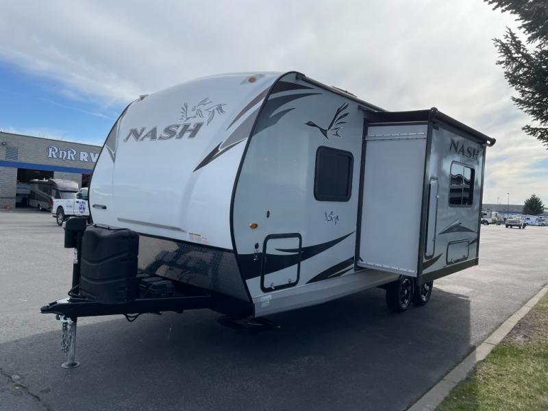 You will always travel comfortably in this Northwood Nash travel trailer! This unit features a single slide out for added interior space, double entry doors for a smooth flow of traffic, and a rear bathroom for added privacy! There is also a front semi-private bedroom when you draw the privacy curtains, plus a queen bed, overhead cabinets, and wardrobes on either side to keep your clothes neat and tidy. After an adventurous day, head inside and relax on either the booth dinette or the jackknife sofa. You can even grab a bag of popcorn from the pantry and pop it in the residential microwave!