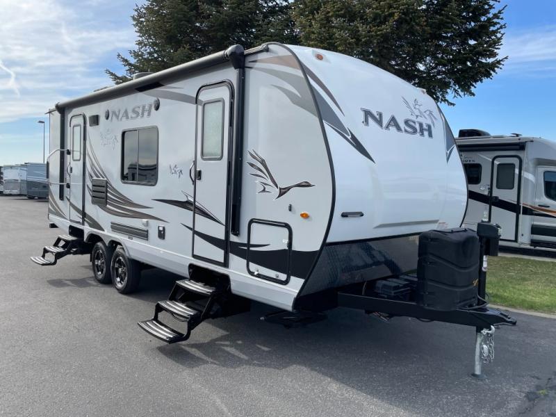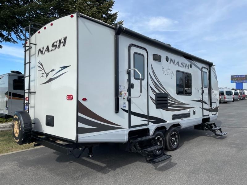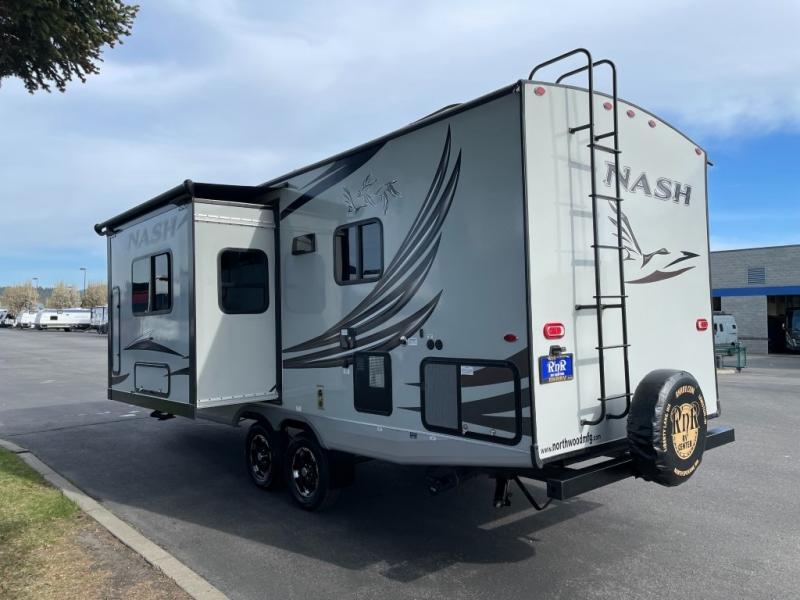 In any Northwood Nash, you will find a travel trailer that is ready to take you on your wildest of adventures and still stand tall! Each Nash trailer offers an abundance of at-home features like the custom Nash signature key rack, the high-output three-burner range with cover, the premium woodgrain pattern linoleum, and the LED lighting. Along the exterior you will find more features that will make your camping experience even better, like the exterior shower, the 20-Watt solar panel, and the Carefree Travl'R 12V awning, plus marine-grade speakers to crank up the tunes! There are also plenty of options available for you to add for even more entertainment and convenience. Some of these options are the LED TV's, the cargo carrier, the thermal pane windows, and the 15K air conditioner with ducting. Make the most of your next camping trip with one of these Northwood Nash travel trailers!