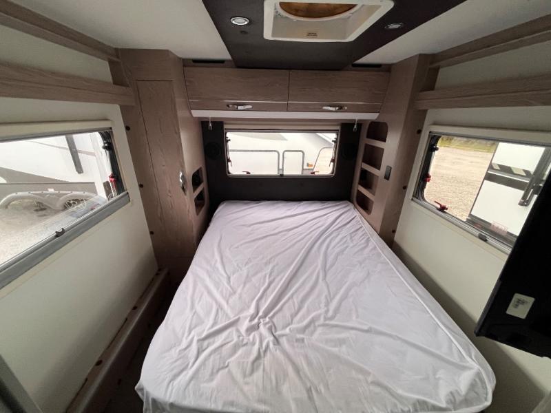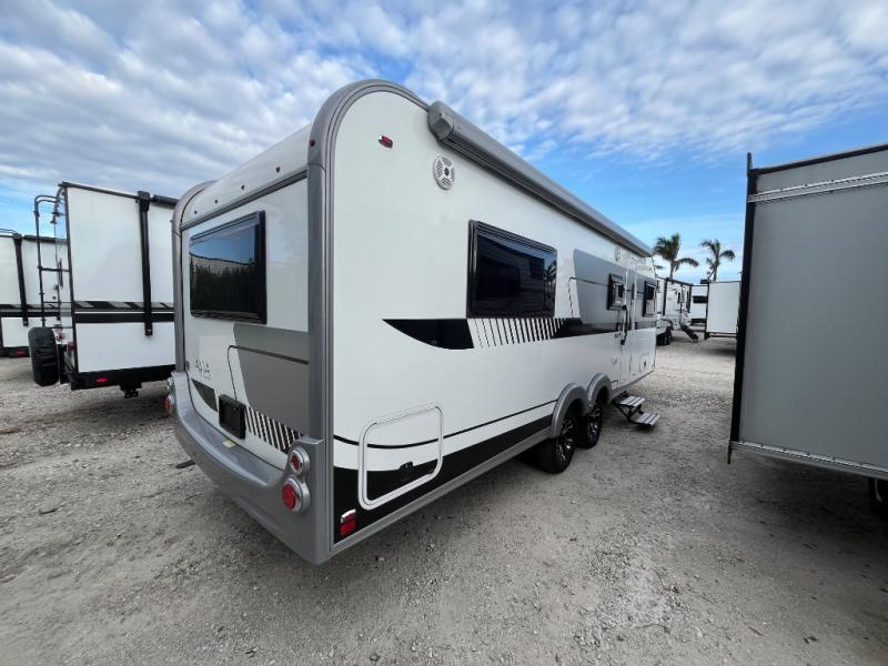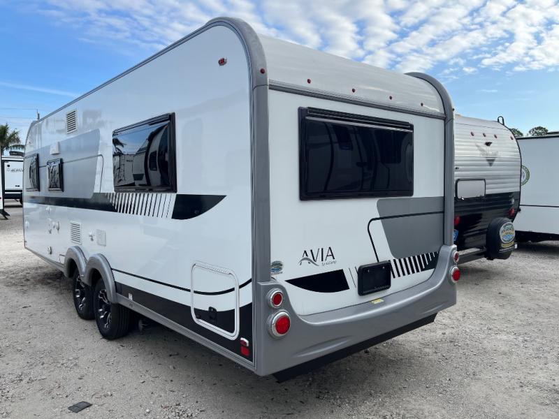 The AVIA travel trailer features Ohio Amish quality comforts inside with plenty of great views, and outside you will enjoy your favorite sounds from the premium speakers, LED amber porch lights at dusk, and a 16' cassette awning whenever you are hanging out taking in the great outdoors! The lighted entry handle with motion sensor guides you inside after an evening of campfire and s'mores. The dry bath awaits so you can easily get cleaned up to enjoy the rest of your evening inside lounging watching television on the 24" flat-screen TV, or take in a bit of constellation and star searching through the stargazer window overhead. After waking from a great night's rest, the kitchen amenities are readily available for creating a yummy breakfast feast as you prepare for another full day of adventure and fun!