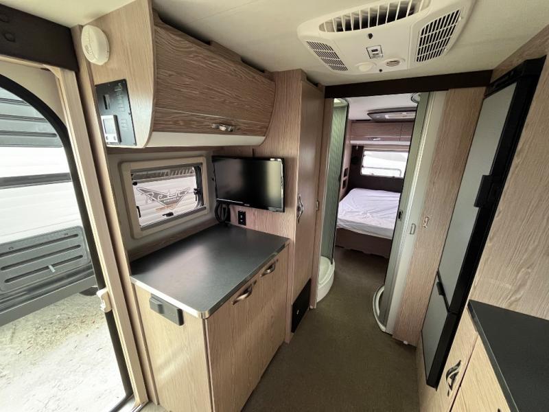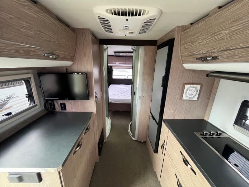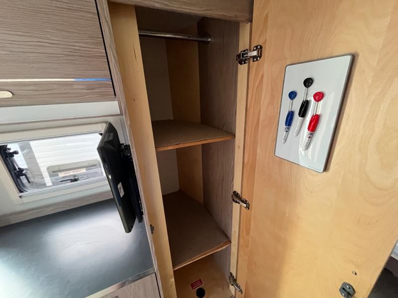 Relax in comfort when you make this nuCamp AVIA your adventure homebase. Enjoy plenty of space and spectacular views through the many windows during the daytime hours, and you will love the stargazer window for after dark views of the night sky as well. The multi-function power bed offers a place for a great night's rest, or a space to kick back and read a good book. Dining inside will be super easy with the u-shaped dinette that can easily convert to a bed at night, plus the three burner stovetop, sink, and in-drawer convection microwave oven and fryer will have you easily whipping up camp favorite meals and snacks for everyone. You will love the look of the European-styled cabinetry for stowing away all of your belongings inside, plus a pass-through storage compartment outside provides a space for your camp chairs and outdoor gear when not in use.