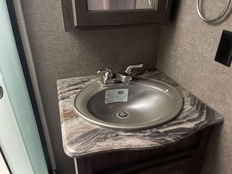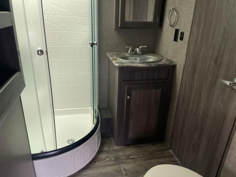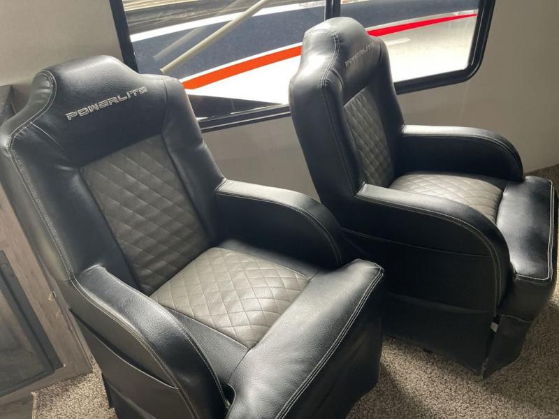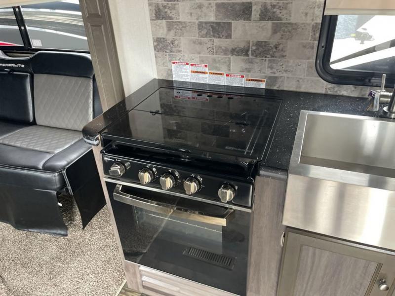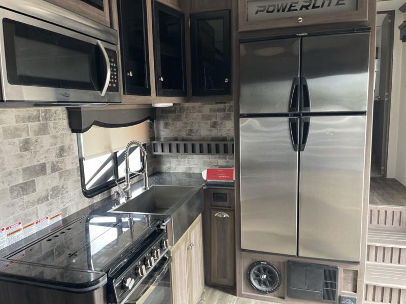 For a relaxing and inviting weekend getaway, you need this Powerlite toy hauler that will give you a piece of home wherever you roam! From the king-size bed in the private master suite to the fully loaded bathroom with a skylight above, you will be able to feel the elegance this trailer provides from the moment you enter in. If you enjoy traveling with company, you will be able to do so in this unit because the electric bunk, along with the sofa slide, give this model the space to sleep six people.