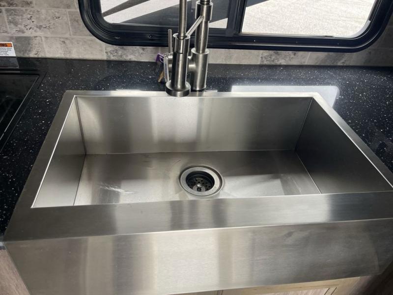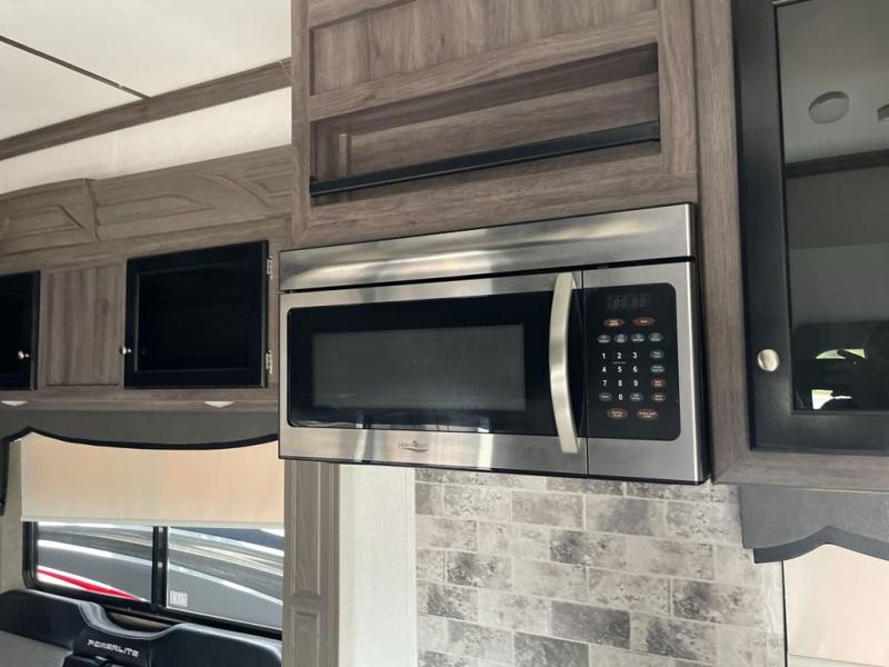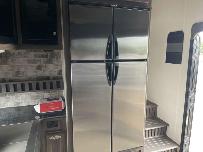 Pacific Coachworks is a company that is dedicated to providing high-quality RVs, and the Powerlite fifth wheel toy hauler is a perfect example of that commitment. You and your family will find the ultimate enjoyment as you bike, hike, or fish, and you will certainly appreciate having the luxurious Powerlite to return to afterwards. The inclusion of the 5.5 Onan generator with transfer switch means that you will be able to go off of the grid whenever you feel like taking the family "dry camping." Since the Powerlite includes its own fuel station, you can keep the fun and the fuel flowing throughout your entire weekend getaway, and at the end of each night, you can gather everyone together outdoors underneath the beautiful night sky as you stay warm next to the exterior fireplace and watch a movie on the exterior TV.