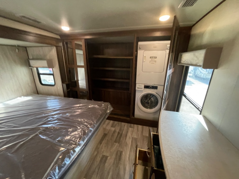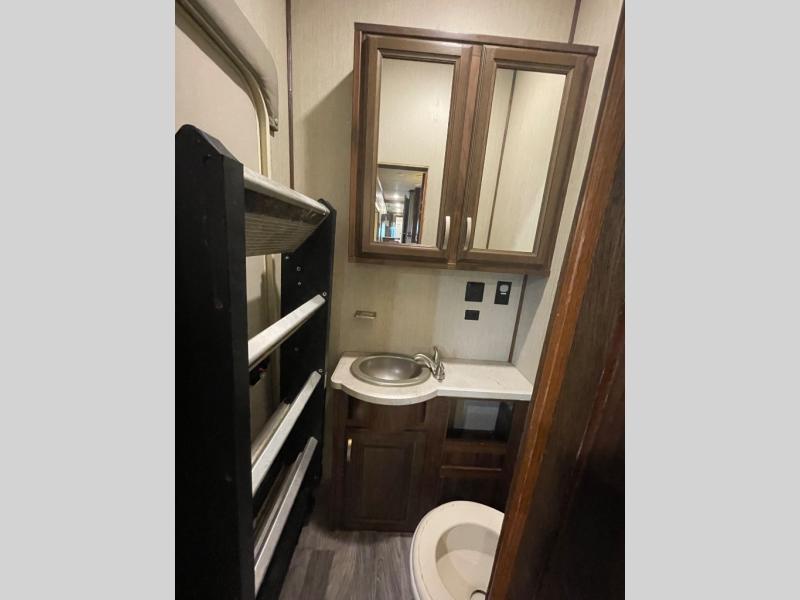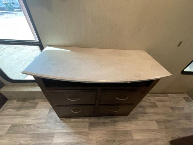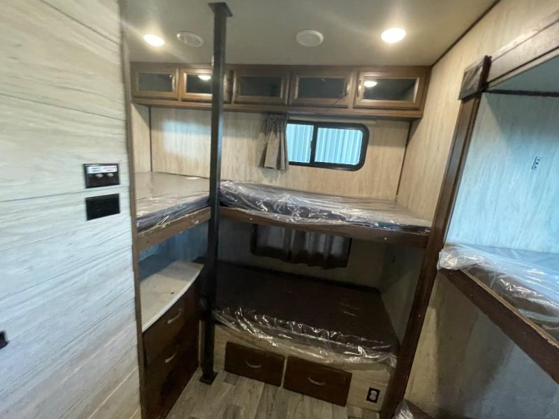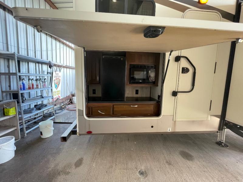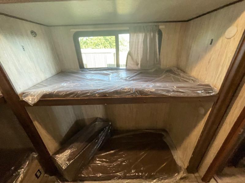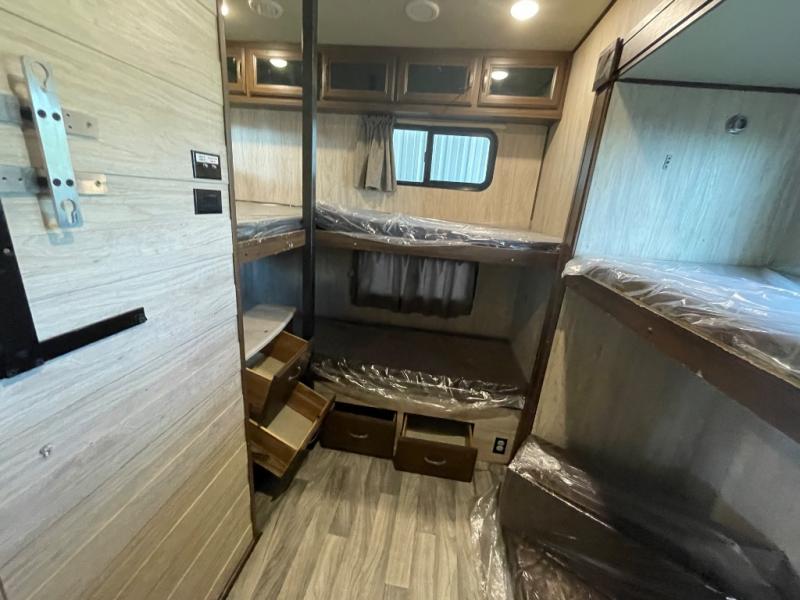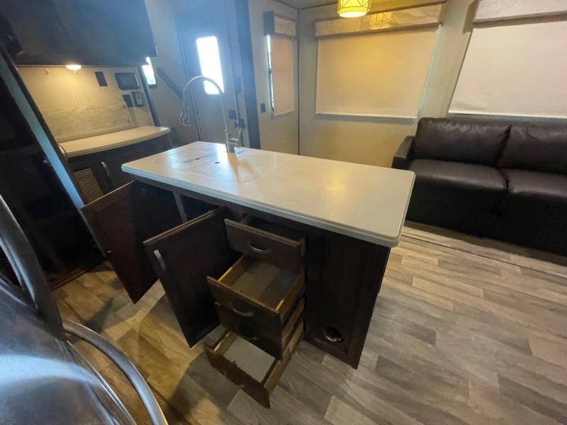 Imagine your family of seven traveling with this Columbus Compass fifth wheel behind you wherever you land! The kids are laughing and playing in their own bunkhouse on the bunk beds or the split tri-fold sofa, and you and your spouse are reading a book while laying on the pillowtop mattress on the opposite side of this fifth wheel. The next day you can make breakfast or lunch depending on what time you wake up with all the kitchen amenities provided. You might even choose to cook the sausage outside at the outdoor kitchen. The convenience of having a full bathroom for yourself and a half bath for the kiddos is a "must have" feature. Come see what else you can't travel without on your next vacation.