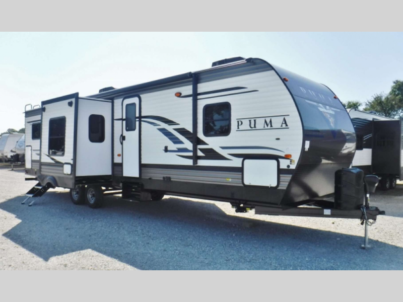 If you love adventure and enjoy the outdoors, the rugged-built Palomino Puma travel trailers are a great choice for making your next getaway fun and trouble free! The Puma is offered in a variety of sizes and layouts with plenty of bunk models available for the kids. You will find excellent features included with each of these models, such as Beauflor linoleum flooring, an enclosed underbelly, a large pass-through baggage door, and pre-wiring for solar power. And, the electric awning with LED lights is such a great addition to the exterior because it allows you to effortlessly enjoy shade from the sun, protection from the rain, or illumination once it's dark.