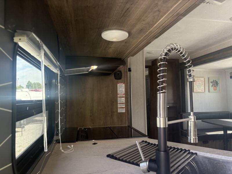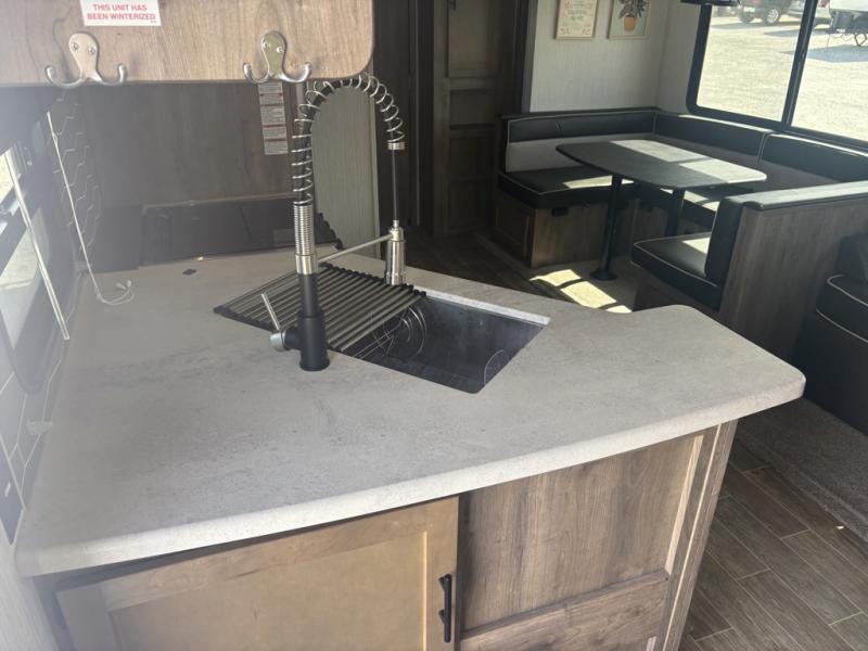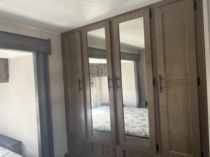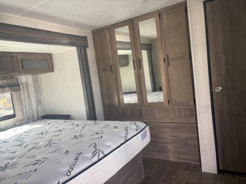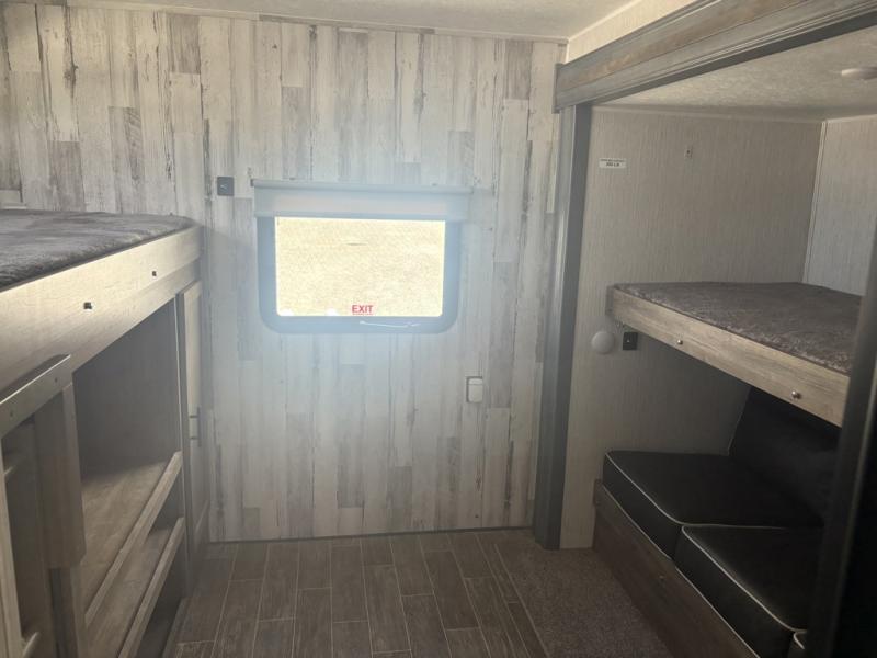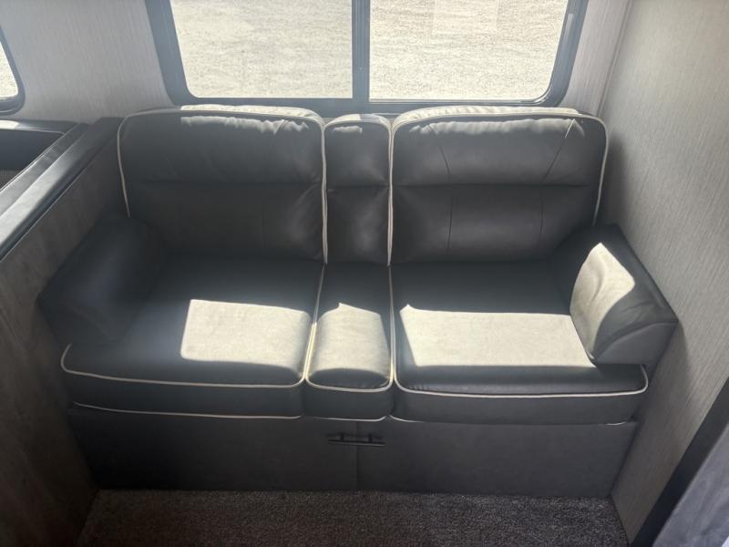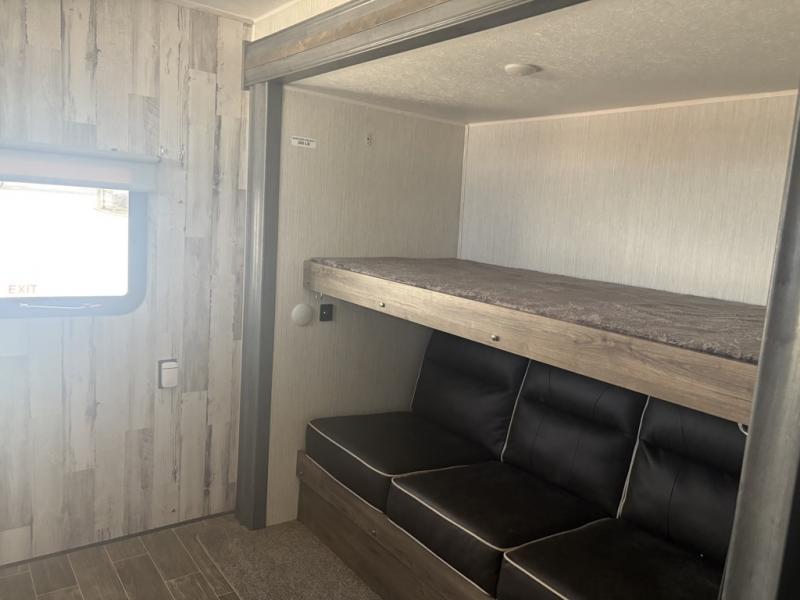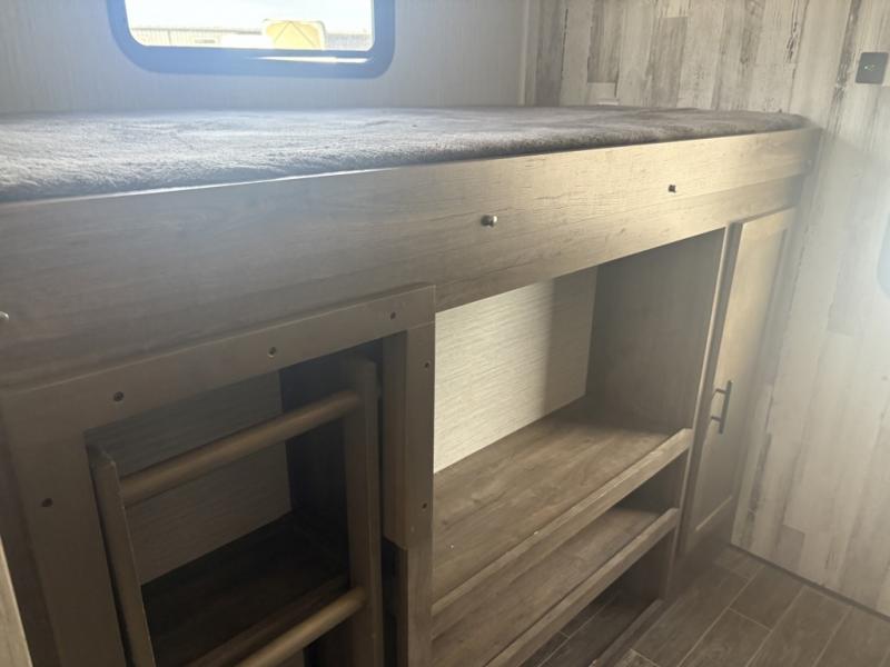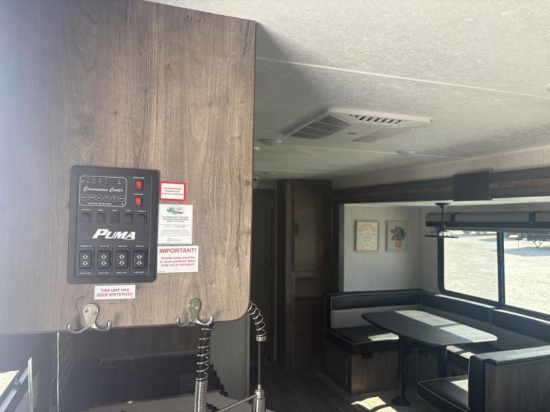 After playing outdoors all day, you can come inside this Puma travel trailer and relax on the jackknife sofa before taking a shower in the full bathroom. The kids will surely head towards the private bunkhouse to play games on the floor or lie down on their own bunk bed. You can escape to your private oasis as well in the front private bedroom where you will find a full-size closet and queen bed slide.