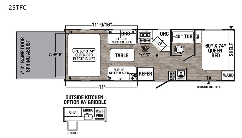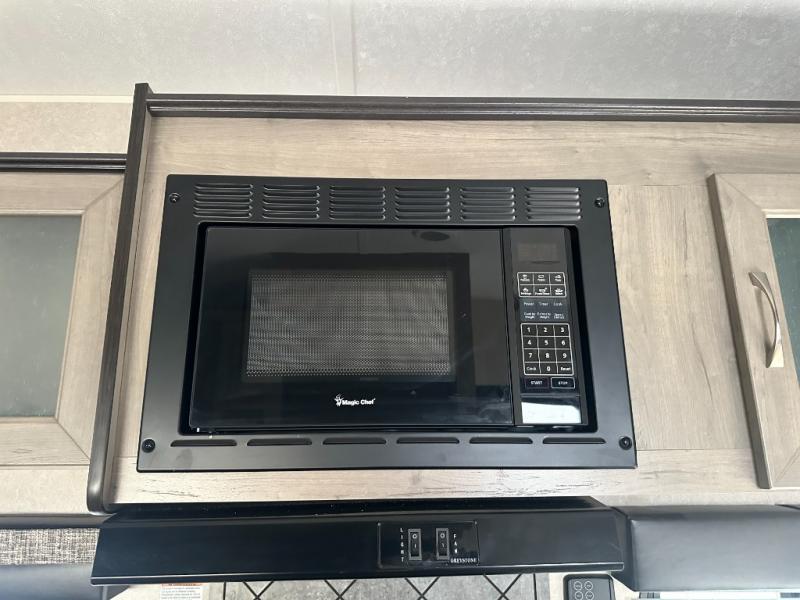 This Puma XLE Lite toy hauler is exactly what you need for your next camping trip because it comes with an 11' garage which allows you to bring along all of your large camping gear, like tents, cots, or lawn chairs. But if you prefer sleeping indoors, you can cuddle up each night on the RV queen bed that is in the private bedroom at the front of this trailer or on the opposing sleeper sofas, and if you enjoy spending your evenings outdoors in the fresh air, you can do so underneath the 14' electric awning.