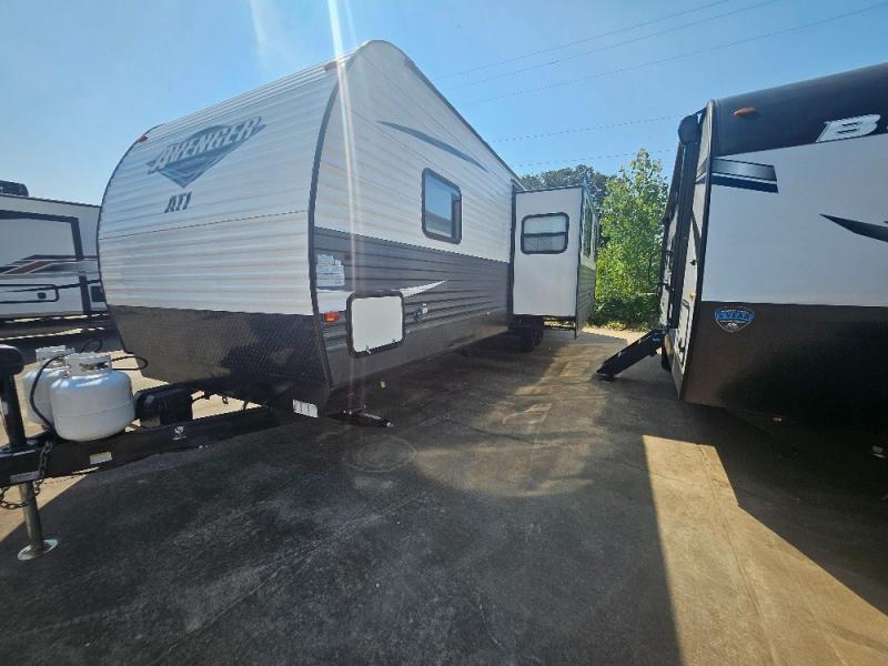 Don't waste any time getting out to your favorite getaway spot with an Avenger travel trailer from Prime Time RV! The Avenger will provide long-term quality and durability because of its exclusive EVERLAST construction, Dexter EZ-Lube axles, diamond-plate rock guard, and Solid Stance fold-down steps. Plus, the Avenger will also deliver industry-leading beauty on the interior with its designer window treatments, its seamless Carefree Congoleum flooring, its large fully vented windows throughout, and its premium fabrics. You will also be grateful to find a massive under-bed storage space so that you can keep extra luggage hidden away and out of sight.