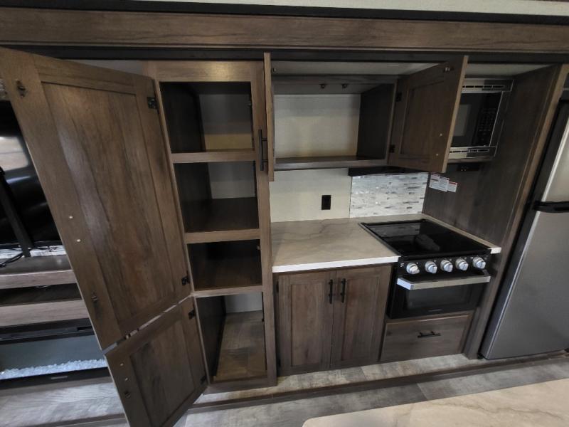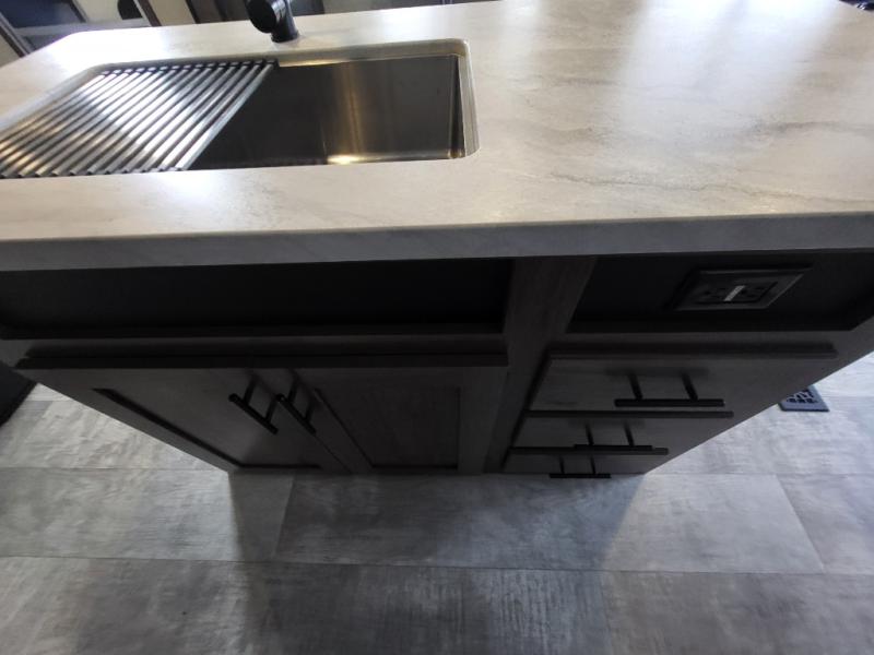 With any Avenger ATI travel trailer, you will feel secure knowing that it has been made with exclusive Everlast construction, and the Dexter E-Z lube axles provide safety and peace of mind while traveling to your favorite locations. Once you have set up camp, you will appreciate the exterior shower that provides an extra place to clean off and the LED-lit power awning that lets you relax outside with family and friends.