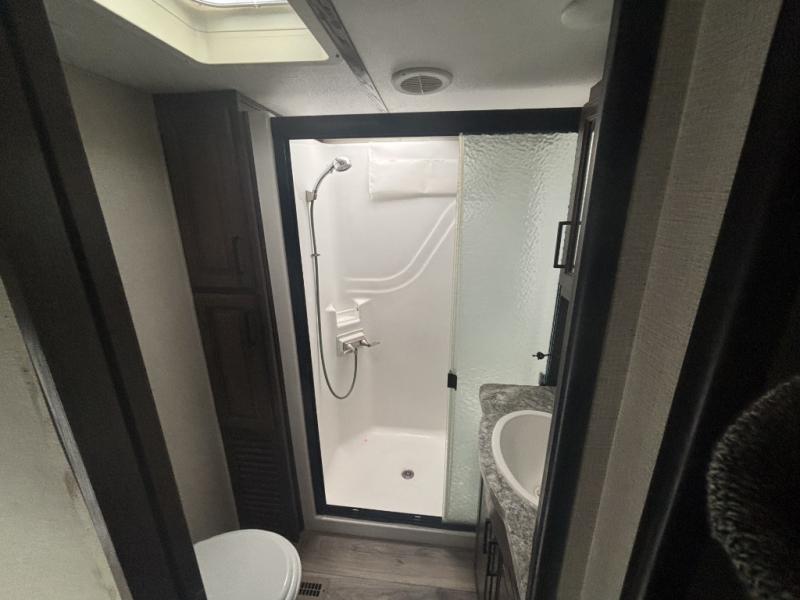 In any Prime Time Crusader fifth wheel you will find the exclusive Eternabond Construction, which includes aluminum framed side walls, end walls, and main floor to ensure years of use. The king size shower with a seat and the Deluxe Skyview Skylight over the tub allows you to get ready for the day without feeling cramped. Each unit features a 5,100 BTU LED fireplace, an LED lighted awning, USB charging stations, and a large LED TV. You'll enjoy stainless steel appliances in each kitchen, as well as solid surface counter tops, polished Nickel fixtures and hardware, and a deep, single bowl sink. Make the choice today to start a new adventure with one of these Crusader fifth wheel's!