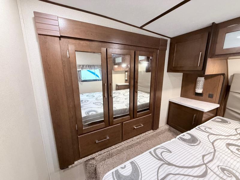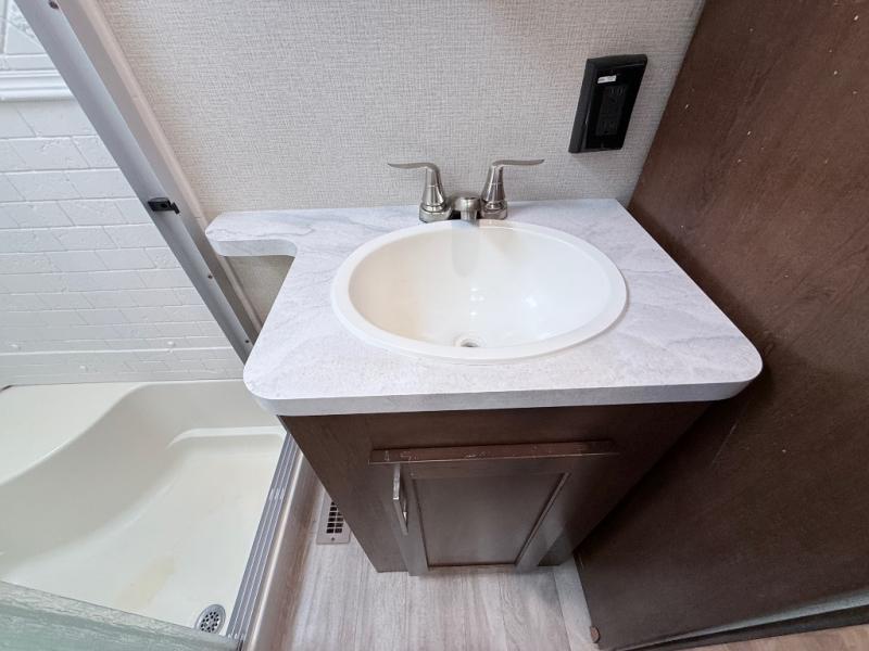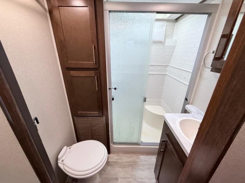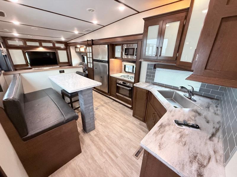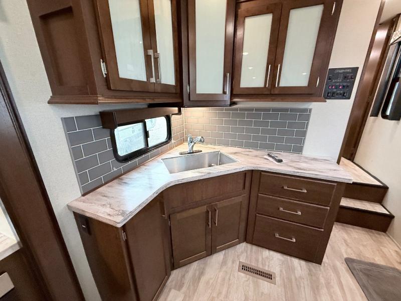In any Prime Time Crusader fifth wheel you will find the exclusive Eternabond Construction, which includes aluminum framed side walls, end walls, and main floor to ensure years of use. The king size shower with a seat and the Deluxe Skyview Skylight over the tub allows you to get ready for the day without feeling cramped. Each unit features a 5,100 BTU LED fireplace, an LED lighted awning, USB charging stations, and a large LED TV. You'll enjoy stainless steel appliances in each kitchen, as well as solid surface counter tops, polished Nickel fixtures and hardware, and a deep, single bowl sink. Make the choice today to start a new adventure with one of these Crusader fifth wheel's!