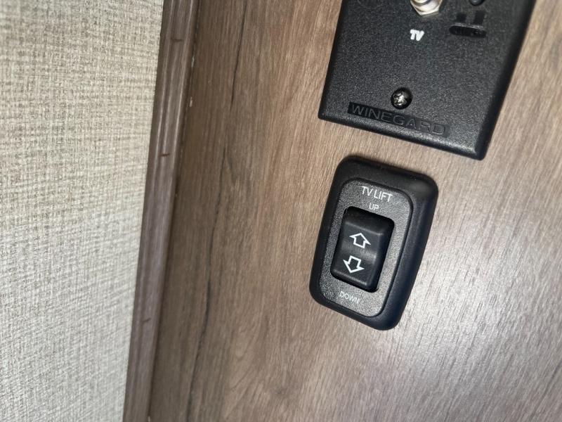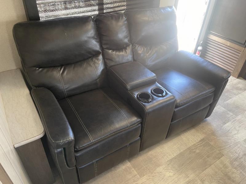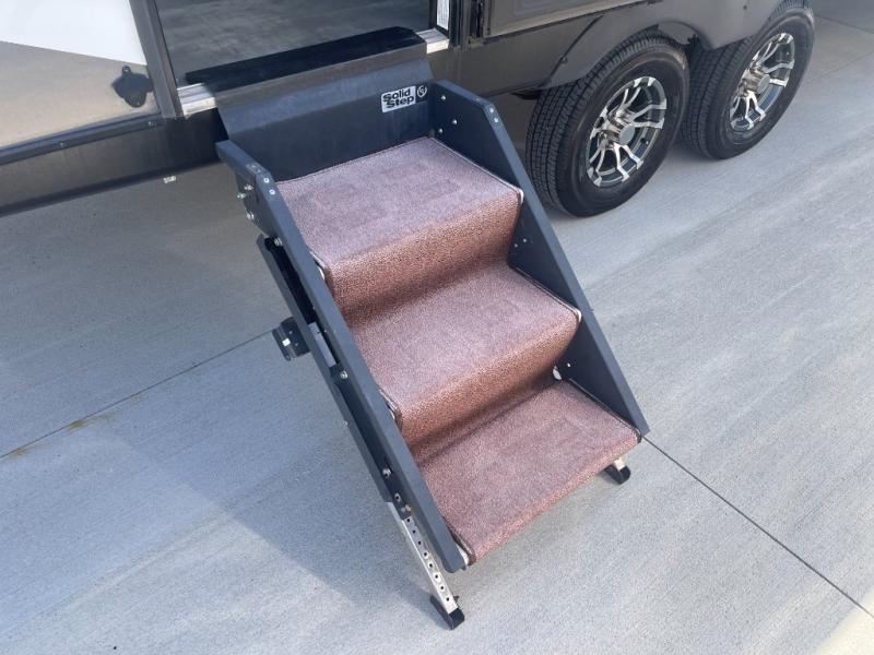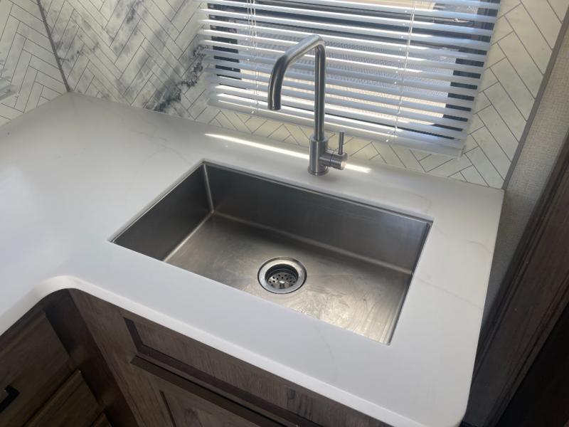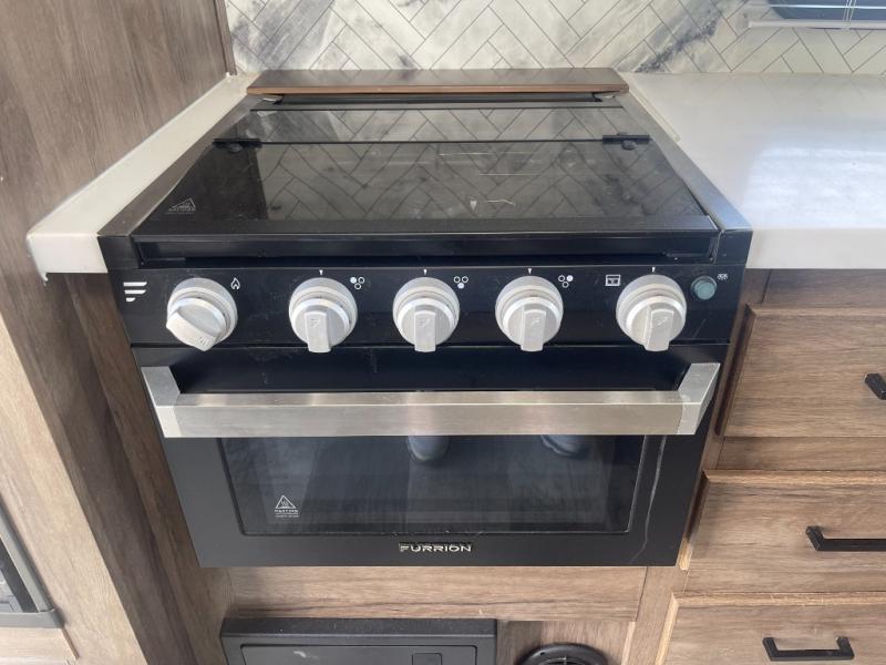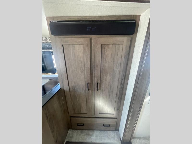 With each Tracer travel trailer by Prime Time RV, you will appreciate the electric stabilizer jacks and the power tongue jack for easy set-up. The Furrion Bluetooth sound bar and the large LED TVs provide entertainment and allow you to stay connected to the outside world while you're away from home. Inside, solid-surface countertops, solid wood core cabinetry, and shaker-style cabinet doors with glass inserts give these travel trailers a more at-home feel you are sure to appreciate. You'll find many exterior conveniences, such as the pet-friendly doggy D-ring, the Solid Step fold-down entry steps, and the universal docking station.