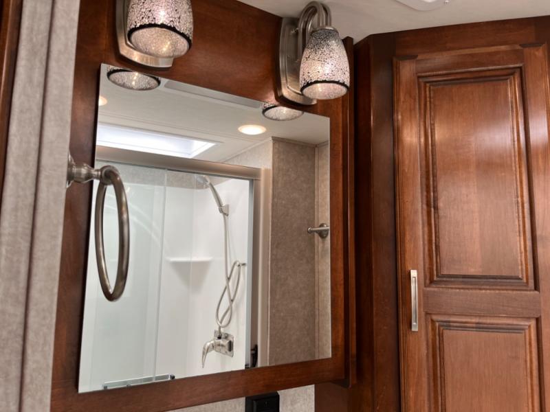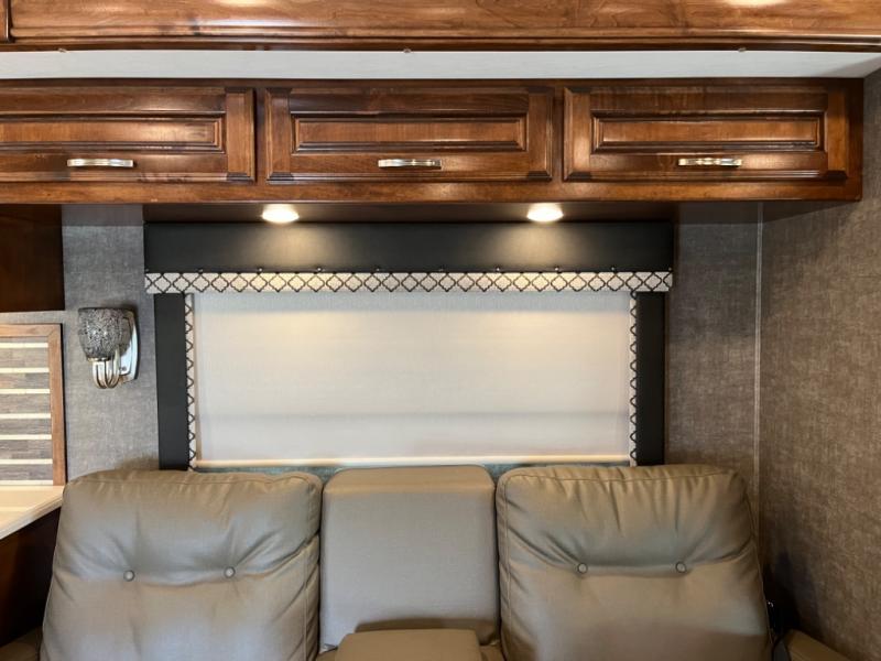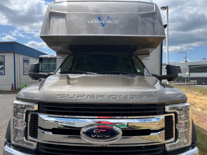 The Veracruz Super C diesel motorhome may be smaller in size, but there is nothing small when it comes to the features that come standard in these models. Each model is built upon a Ford F550 XLT chassis and includes a 6.7L Power Stroke V8 Turbo Diesel B20 engine to power your journey. You'll love the frameless tinted windows with a tilt opening design and screens to let in fresh air and each model includes an electric patio awning with LED Lights and side-swing luggage doors for all your camp gear. Inside, the decorative kitchen backsplash, deluxe fabric window valences, along with the power ventilated skylight with a screen and shade will add to the luxury throughout. These models also include a Multiplex lighting system with color touch screen and Bluetooth App Controller so you can control the lights in your unit in one central location with the push of a button.