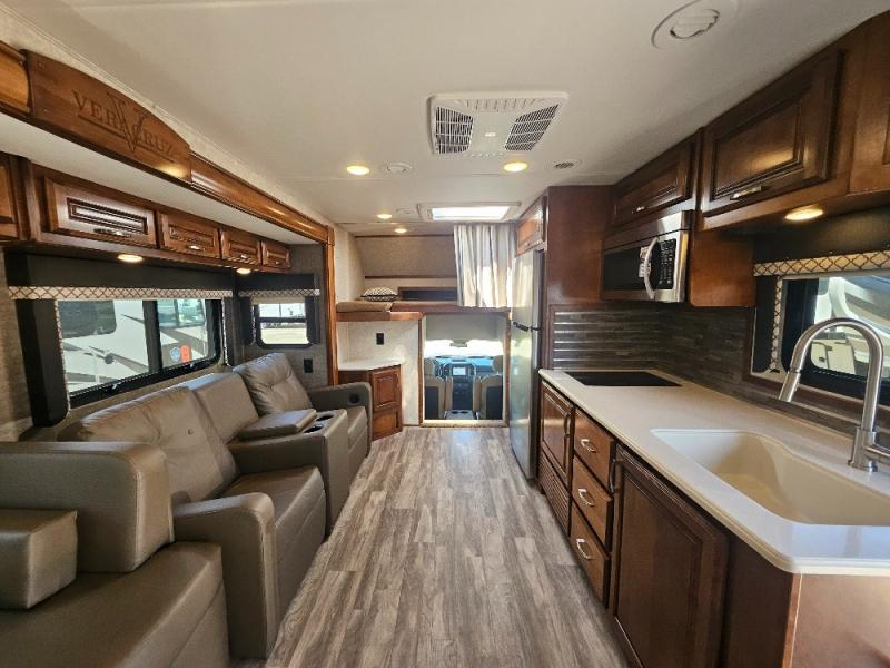 The Veracruz Super C diesel motorhome may be smaller in size, but there is nothing small when it comes to the features that come standard in these models. Each model is built upon a Ford F550 XLT chassis and includes a 6.7L Power Stroke V8 Turbo Diesel B20 engine to power your journey. You'll love the frameless tinted windows with a tilt opening design and screens to let in fresh air and each model includes an electric patio awning with LED Lights and side-swing luggage doors for all your camp gear. Inside, the decorative kitchen backsplash, deluxe fabric window valences, along with the power ventilated skylight with a screen and shade will add to the luxury throughout. These models also include a Multiplex lighting system with color touch screen and Bluetooth App Controller so you can control the lights in your unit in one central location with the push of a button.