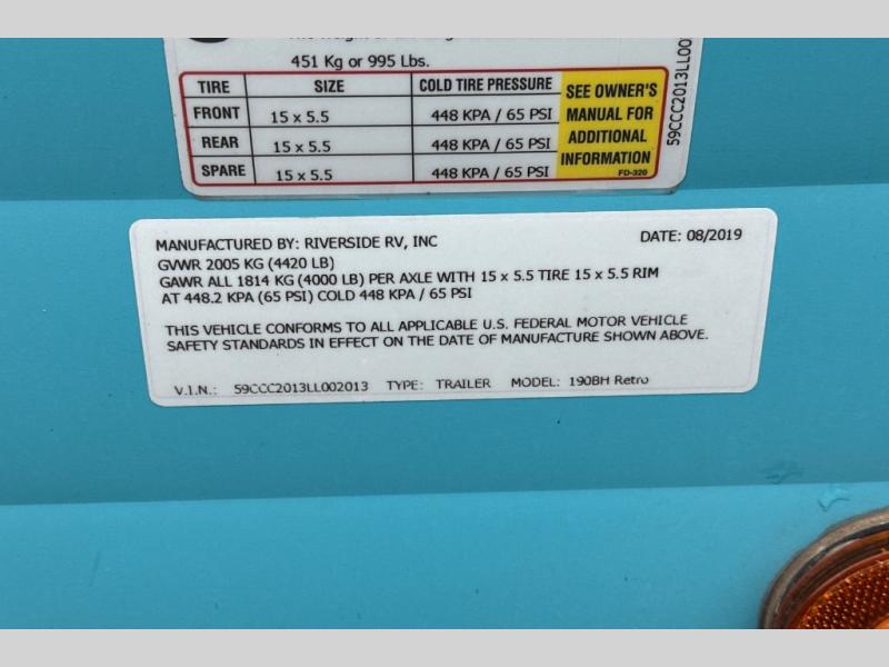Used 2020 Riverside 190BH Travel Trailer