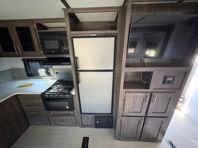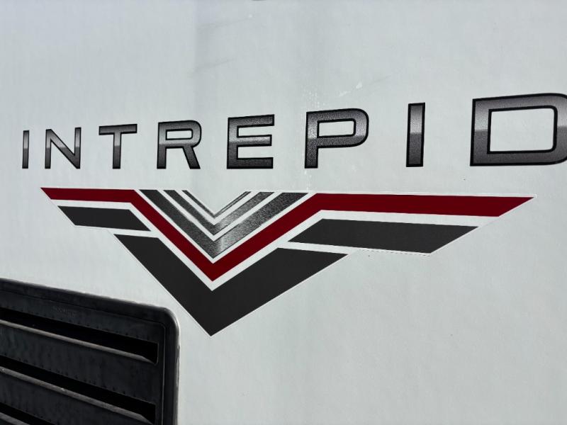 Set your sights on this Intrepid travel trailer for your next adventure in nature! After you've set up camp and had a look around the campground, come back to this unit and relax on the sofa. The kids may even want to watch a show on the 32" TV before heading back outside to play. You can prepare lunch for everyone on the three burner range or make something quick in the microwave oven. This unit includes a front private bedroom with a queen bed and two bed closets for your clothes, and the full rear bath will provide a little more privacy as you get ready for your day.