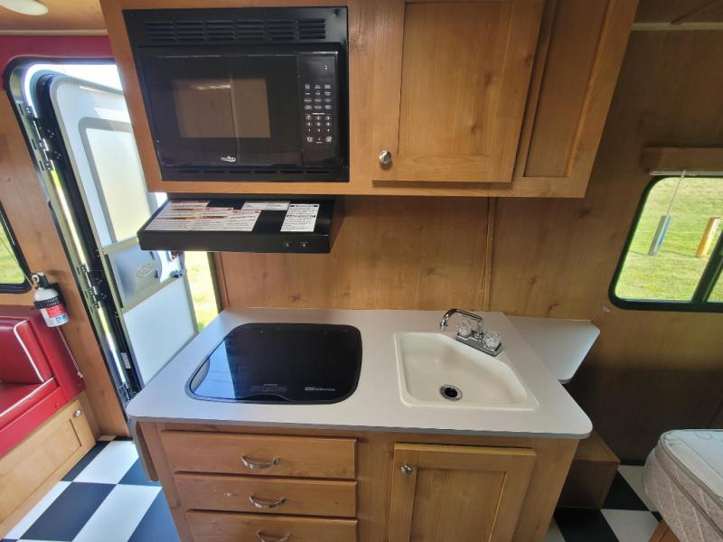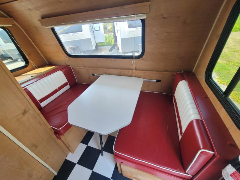 You will love the fun and vintage vibe found in this Retro travel trailer! With a full bathroom, an RV queen bed, and a kitchen, you will have all of the tools you need to get away for the weekend. The booth dinette will be a helpful feature because it will give you a spot to eat your dinners and sleep at night. The 10,000 BTU A/C will keep the interior cool, and if you want some fresh air, you can head outside underneath the 10' power awning.