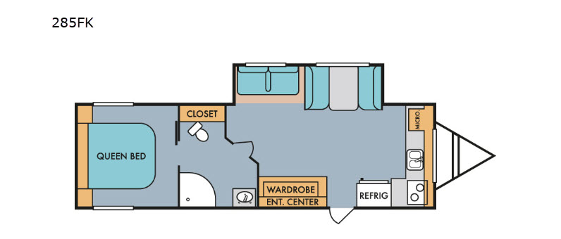 If you have been searching for a sleek travel trailer, look no further because this Retro travel trailer has you covered. You will love the rear private bedroom which allows you to have a bit more privacy, and the walk-through bath is a nice size so that you don't need to worry about small places to change in or get ready for the day. The sofa and booth dinette can be used for relaxing, playing games, or sleeping on at night.