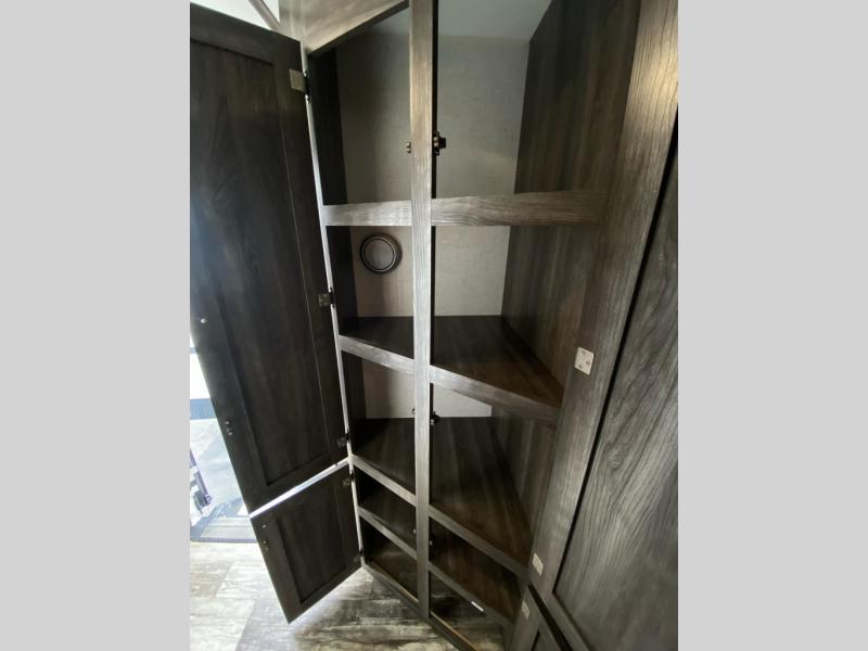You'll be so excited to spend your time enjoying this Autumn Ridge once you see how comfortable the master suite is with its queen-size bed, wardrobes on either side, and a private entrance into the bathroom! If you have friends that want to join you on your adventures, they can use the jackknife sofa and booth dinette, and everyone will benefit from the three-burner range with 17" oven, the microwave, the pantry and the stainless steel refrigerator.