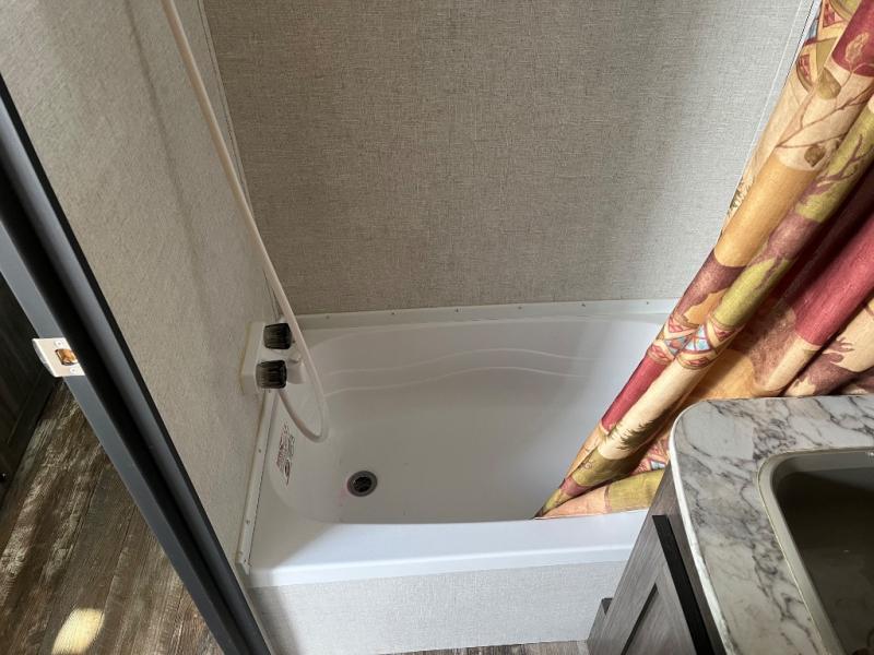 You will certainly look for any excuse to take this Autumn Ridge Single Axle travel trailer from your driveway and out to the campground! The U-shaped dinette is a wonderful addition to have because of its versatility, and the residential style flooring provides a beautiful base to the comfortable interior. You will also appreciate having a full bathroom with a foot flush toilet, shower, and power vent when you wake up each morning.