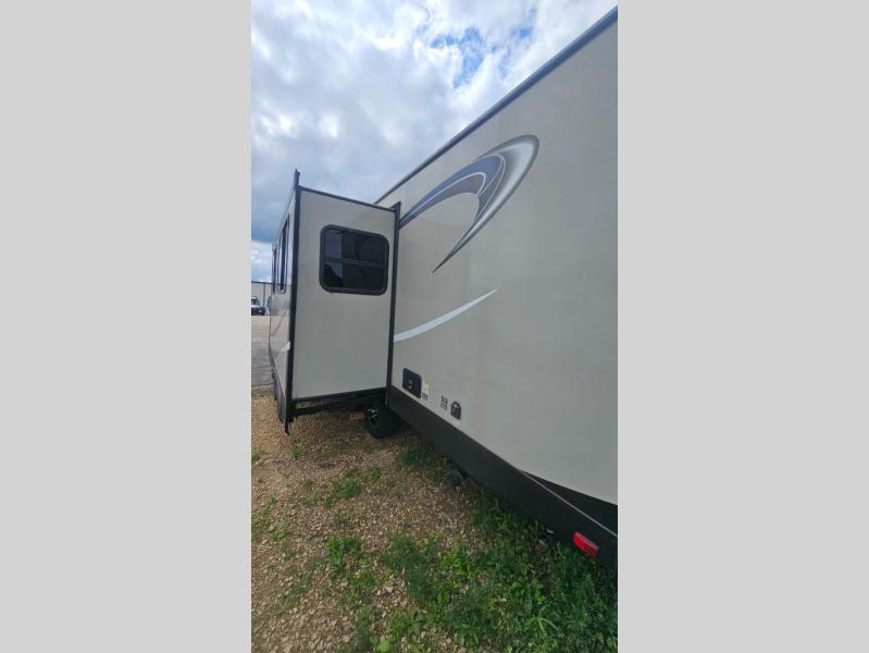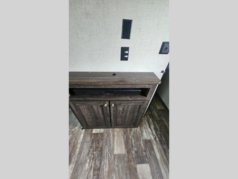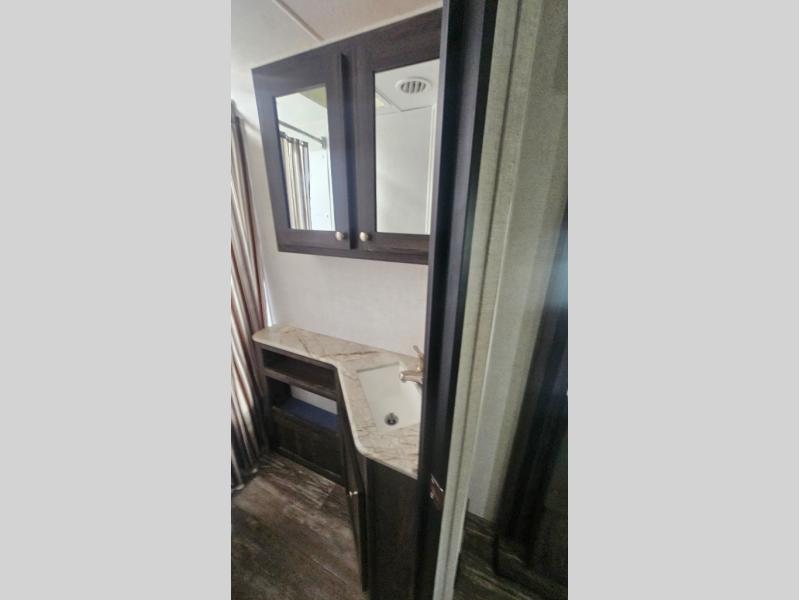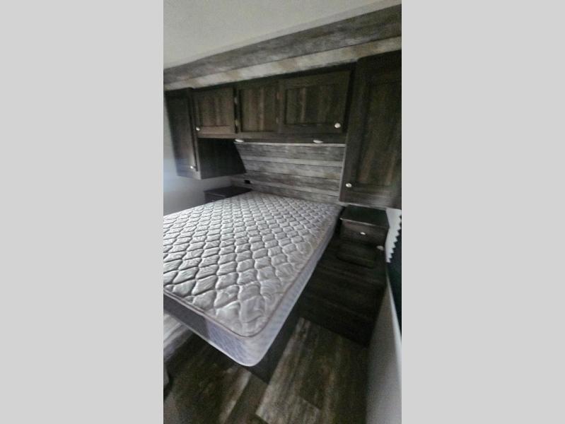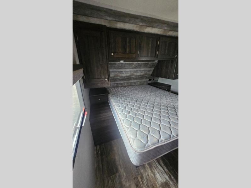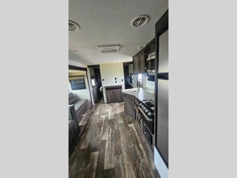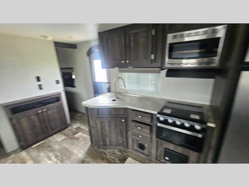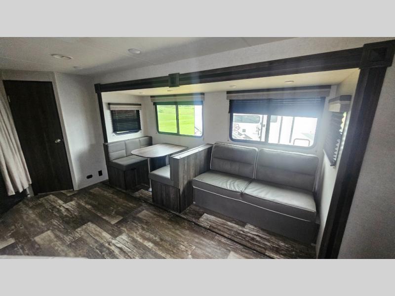 When the great outdoors calls your name, load up the kids and head to your favorite state park in this travel trailer. The large slide out in the living/kitchen area allows you to stretch out and the kids will have space to play a game on the floor. This unit features full kitchen amenities inside as well as an outdoor kitchen for when the weather is nice. The kids will love climbing into the double bunk beds each night and the front private bedroom with a queen bed will remind you of home. This travel trailer also includes a booth dinette and a sofa that can convert to comfortable sleeping space for additional guests.
