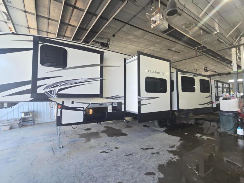 Each Telluride fifth wheel by Starcraft offers TuffShell construction, a PVC roof membrane, an aluminum framed roof, pocket screwed Lumbercore cabinet construction, and a Thermal package which includes an insulated, heated and enclosed underbelly with foil insulation in the floor and roof to camp anywhere and anytime of year. You will appreciate the sturdy entry, solid swing-down steps, the kid-pet friendly features such as residential style flooring with no carpet, and all the amenities including the stylish interior. Choose the freedom of camping with many at-home essentials with a Telluride today!