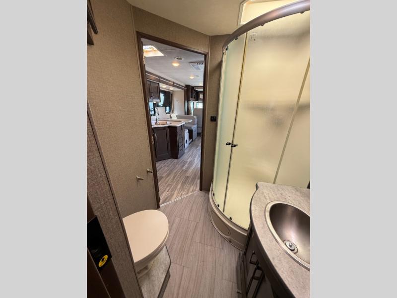 The evolution of a Class A and a Class C motorhome defines each A.C.E. model by Thor Motor Coach. From the power drop-down bunk with a ladder and the elegant fabric collections to the Kibble Station, the Bird's Eye Window, and the Pet-Link multi-purpose tie-down, you will enjoy every single part of the A.C.E. Class A gas motorhome. Choose your favorite layout and start your new adventure tomorrow!