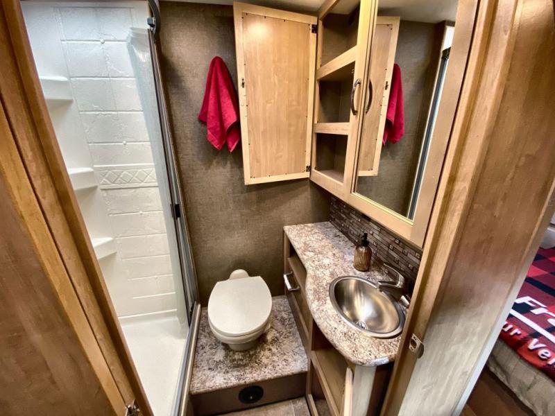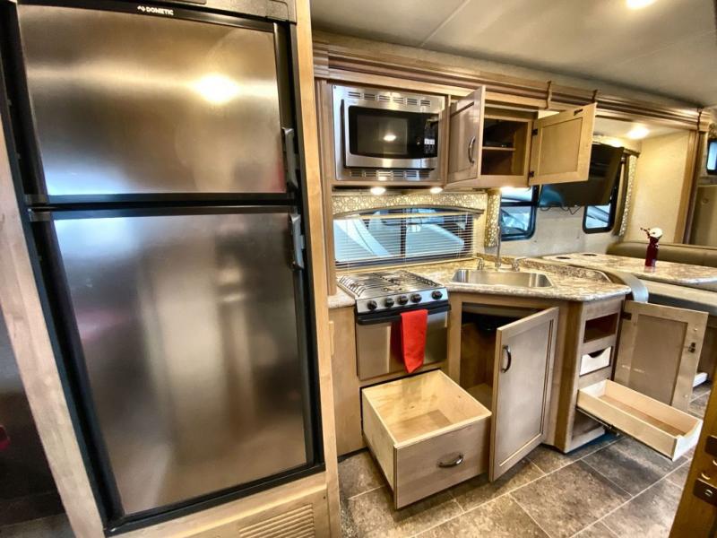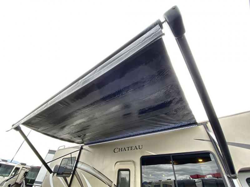 Comfort, convenience, and class is what you'll find in this Chateau Class C gas motorhome! A rear private bedroom is your place to relax at night, and you can also grab a change of clothes from the bedside closets before heading out for an afternoon hike. A large slide in the main living area gives you space to cozy up on the 68" jackknife sofa while you watch a movie on the 40" TV.