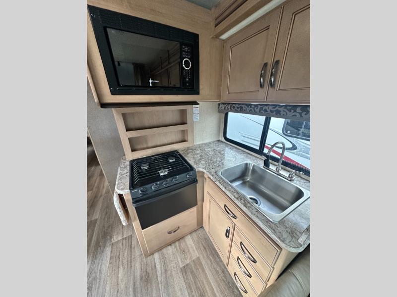 With any Four Winds Class C gas coach you will enjoy the ease of driving and the affordable price. Inside you will find residential vinyl flooring, high-sheen cabinetry with nickel finish hardware, and laminate countertops making it easy to clean after a weekend get-a-away or a long vacation. Each model also includes a Dream dinette for playing games or eating meals. The stainless steel bathroom sink and foot flush porcelain toilet provide a convenience every where you stop. It's time to realize your dreams can come true with a Four Winds coach.