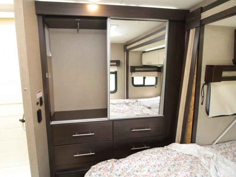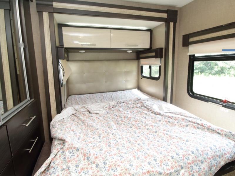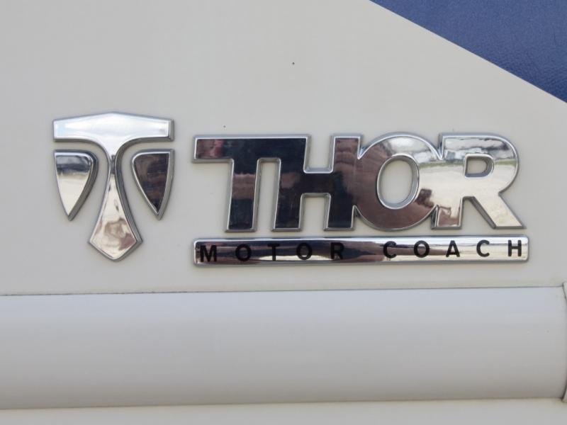 Used Thor Diesel Motor Coach Class C Gemini 24SX with a split bath, theater seating, and a rear bed slide!