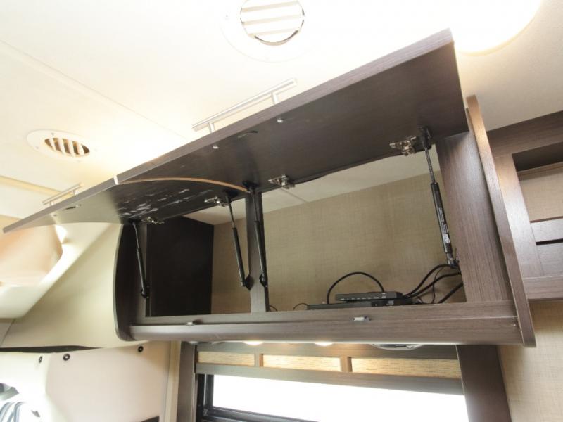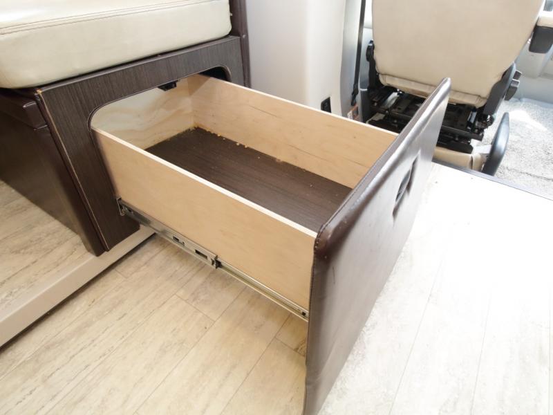 Natural light fills the interior through the skylight over the cab, while LED lighting creates a cozy atmosphere after dark. The Gemini’s modern design includes residential vinyl flooring for easy cleaning and a smart, upscale décor.