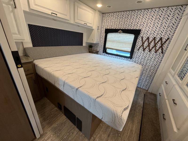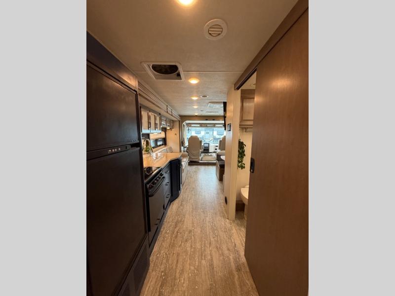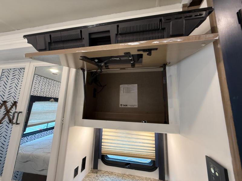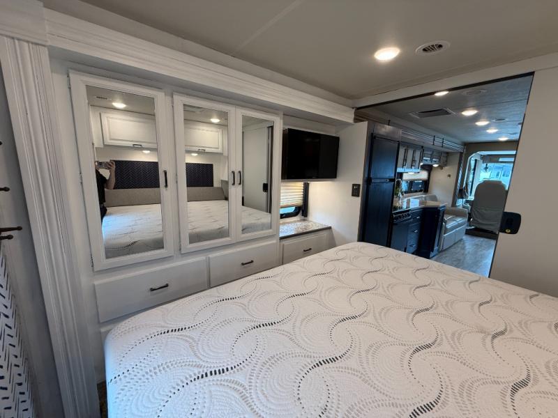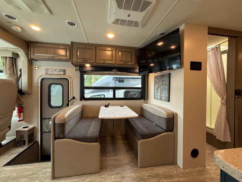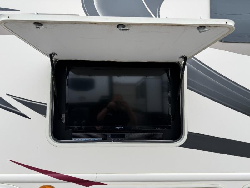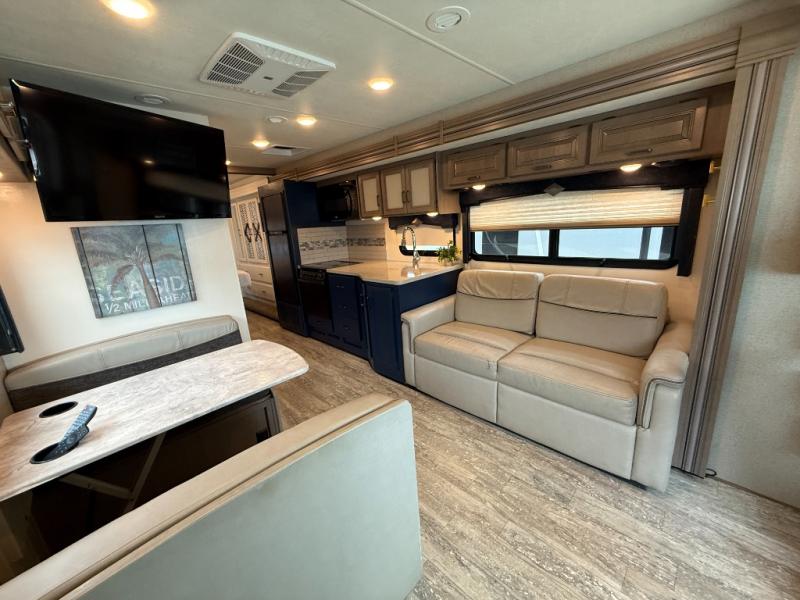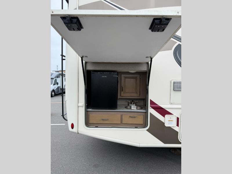 Take this motorhome on your next outdoor adventure! You will love having the choice of cooking outdoors using the exterior kitchen and watching the big game, or cooking inside and watching the game on a bigger TV! After everything is done for the day, you will have a king bed waiting for you in the private rear bedroom. The 68" sofa bed and the 70" Dream dinette provide seating, dining, and sleeping space for your overnight guests. Don't' forget about the 54"x 74" power drop-down overhead bunk above the cab that can sleep up to two more individuals. Take a look today!