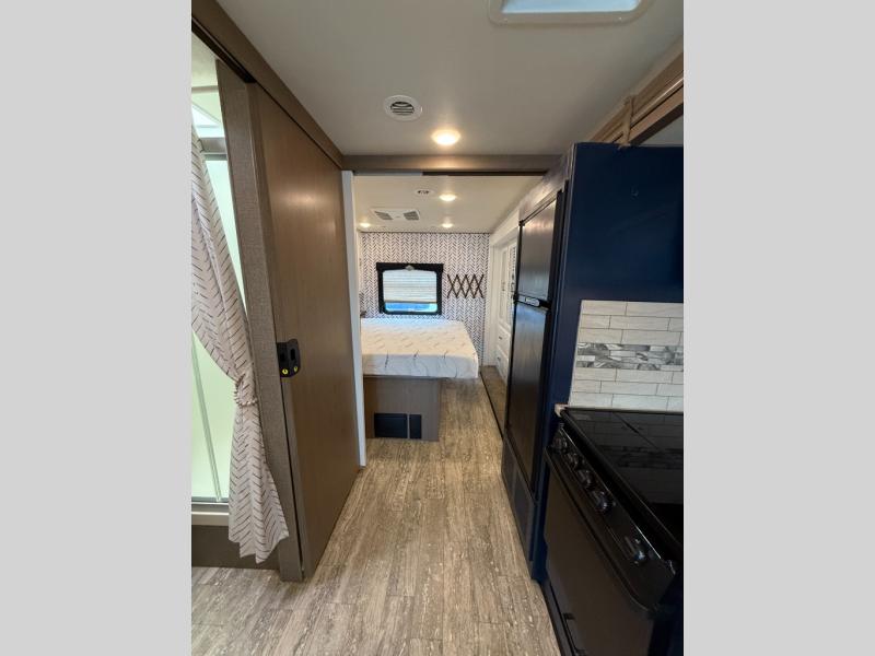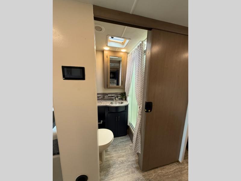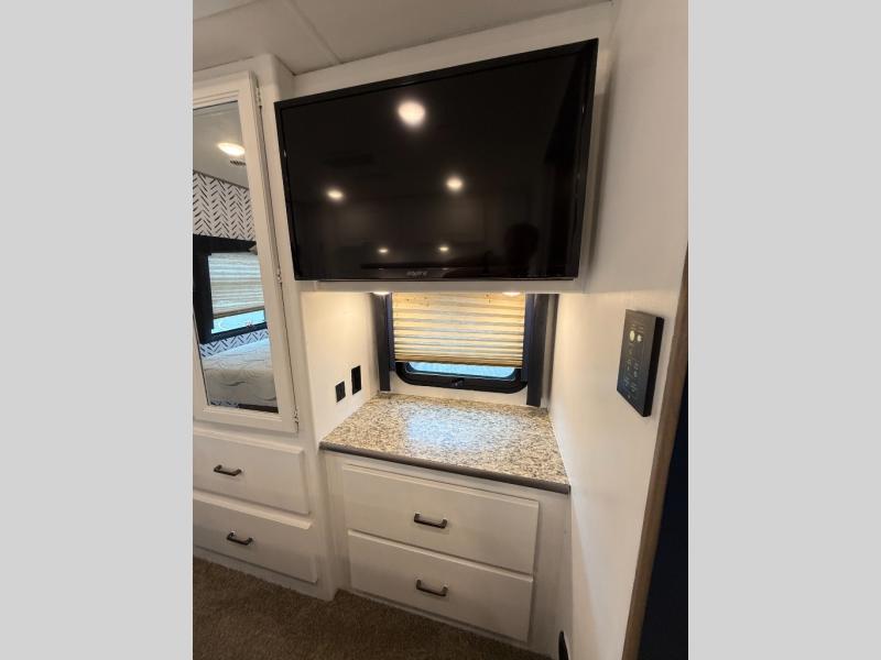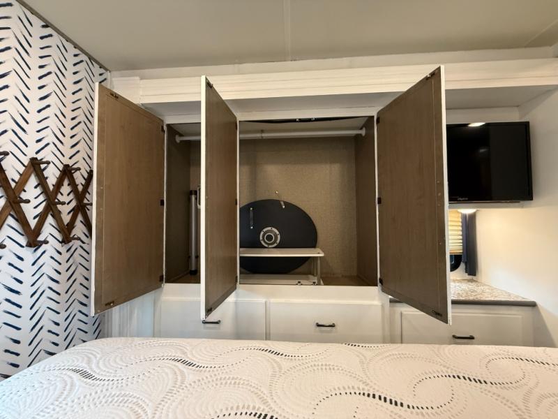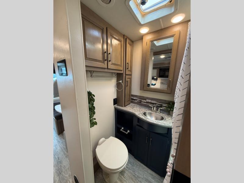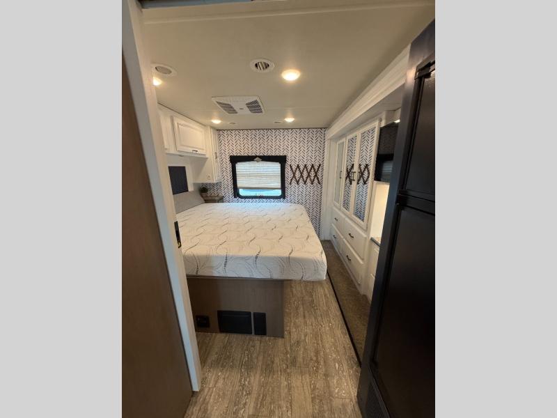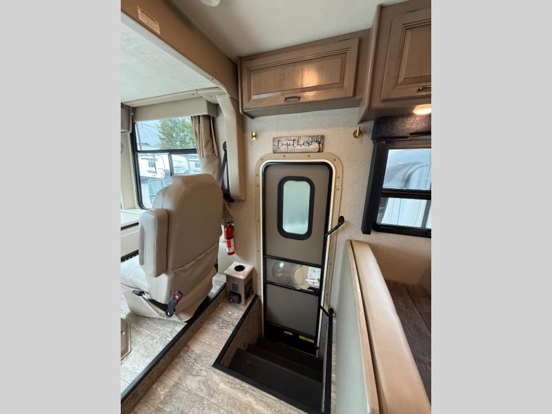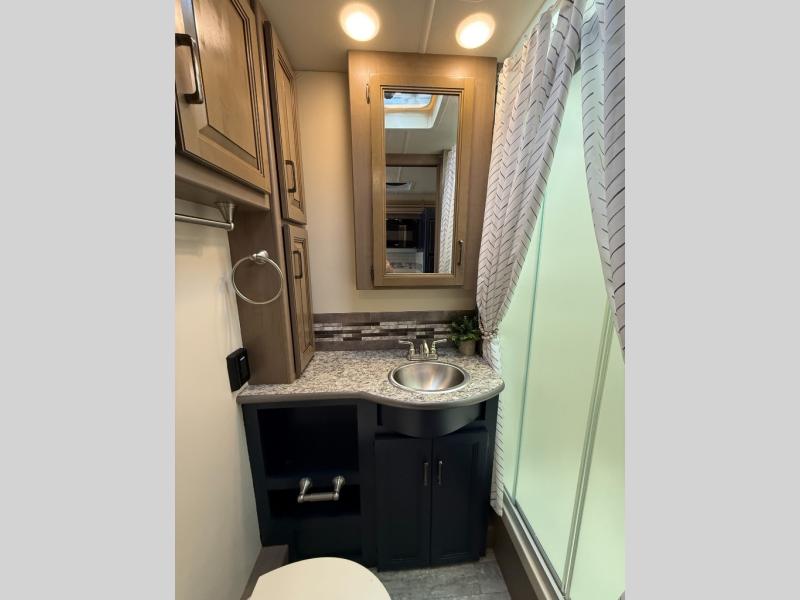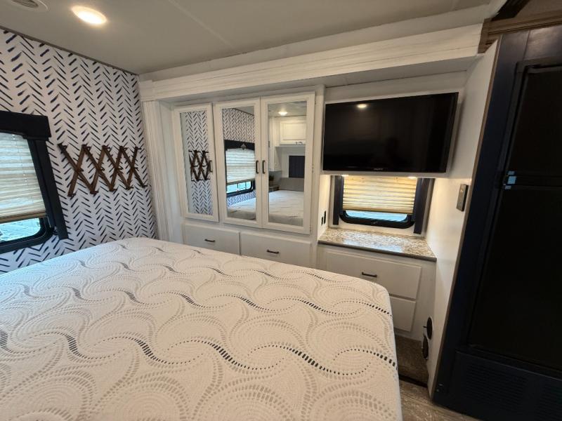 Take this motorhome on your next outdoor adventure! You will love having the choice of cooking outdoors using the exterior kitchen and watching the big game, or cooking inside and watching the game on a bigger TV! After everything is done for the day, you will have a king bed waiting for you in the private rear bedroom. The 68" sofa bed and the 70" Dream dinette provide seating, dining, and sleeping space for your overnight guests. Don't' forget about the 54"x 74" power drop-down overhead bunk above the cab that can sleep up to two more individuals. Take a look today!