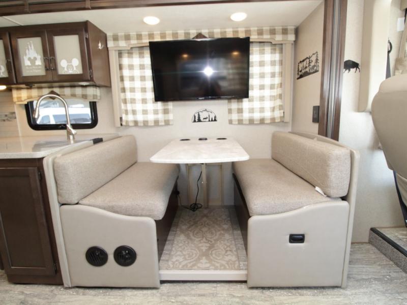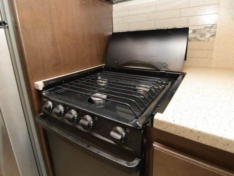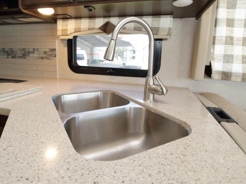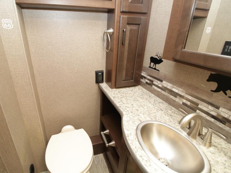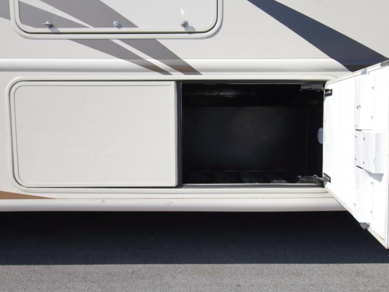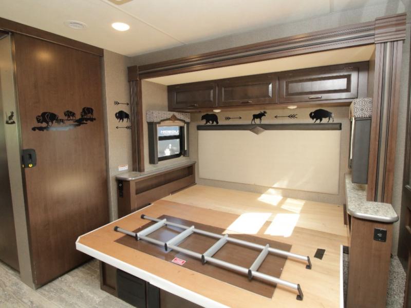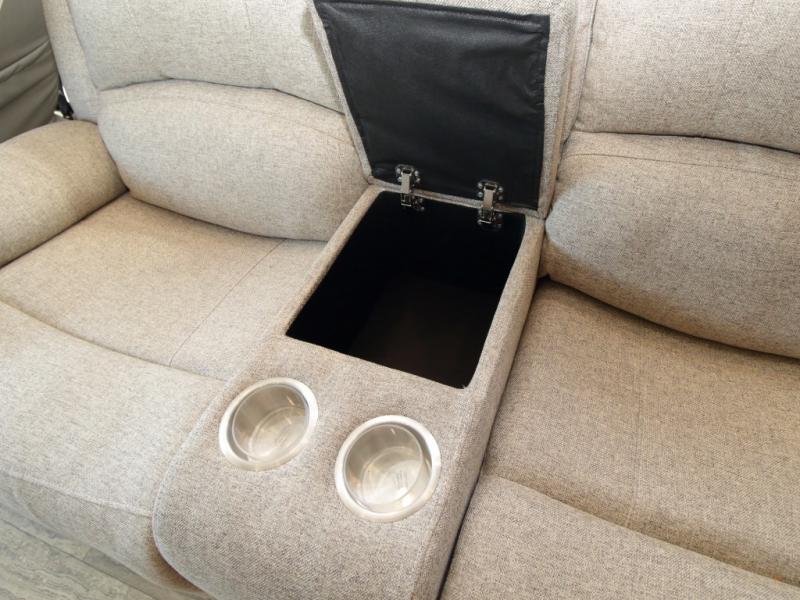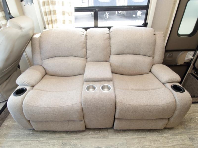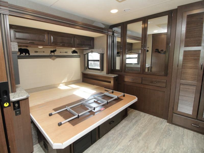 The well-equipped kitchen includes an 11 cu. ft. residential refrigerator with ice maker, pantry, and ball-bearing drawer guides, plus all the appliances you need to cook on the road. Relax indoors with the LED TV, or head outside to enjoy the 32" exterior TV under the power awning.
