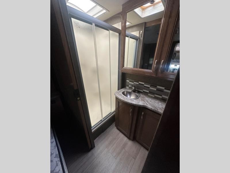 You're going to love this motorhome that includes a full bath plus a half bath for your guests! Mom and dad will enjoy a private bedroom with a slide out king bed and a wardrobe for their things. After a day of playing all day, the kids will love the cab-over bunk, especially since it has it's own 40" TV that also swivels. The chef of the family can prepare dinner on two burner induction cooktop and everyone can enjoy it outside under the power awning with LED lights.