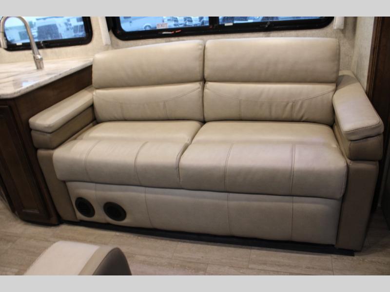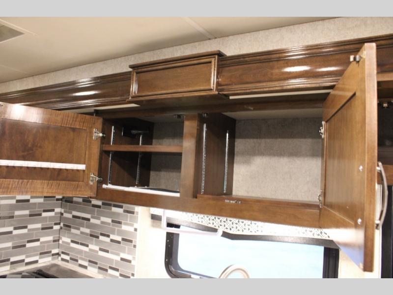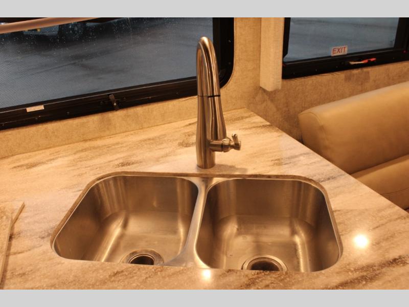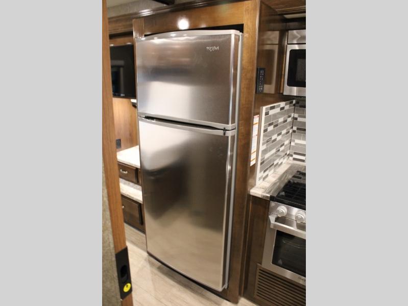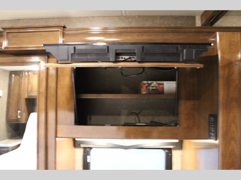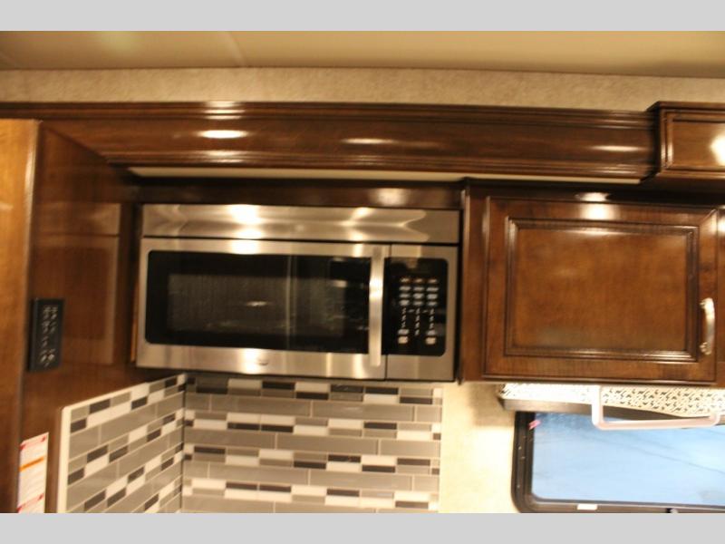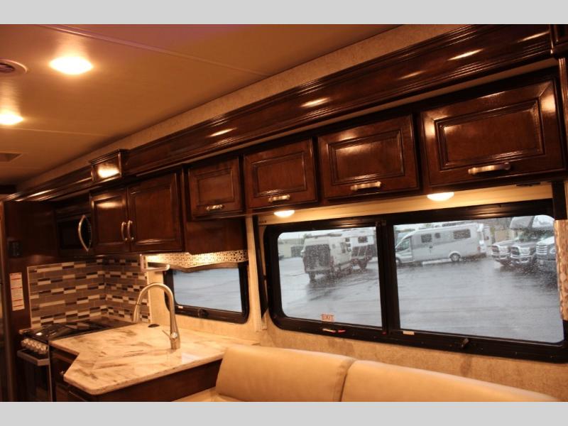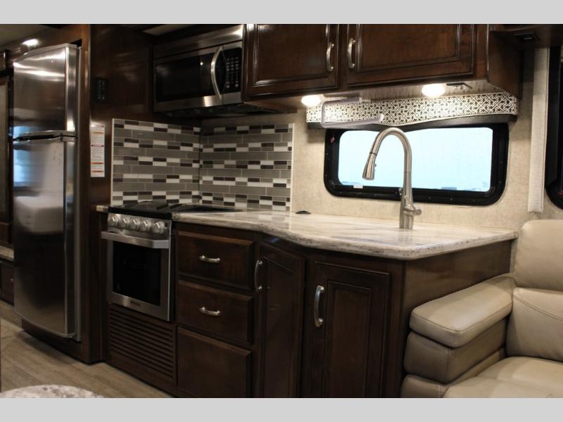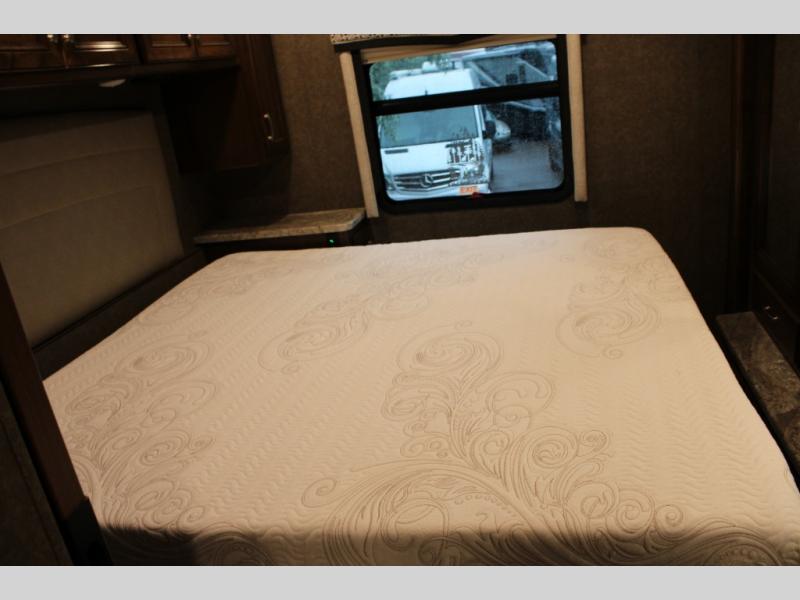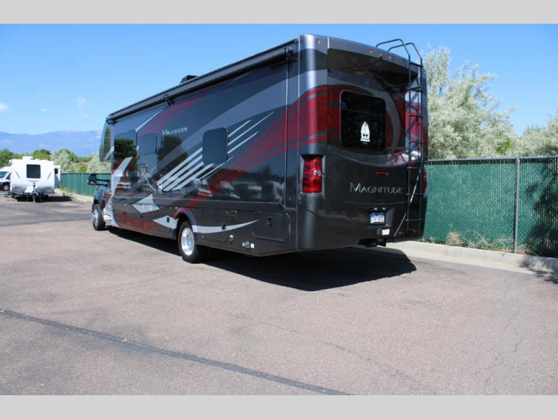 With every Magnitude super C diesel motorhome by Thor Motor Coach you will experience comfort and strength at every turn. The driver will appreciate the 7-inch rear view mirror with a back up monitor and side view cameras that provide an easy and safe way to maneuver and park your unit. These models feature a 7' ceiling height, LED interior lighting, residential linoleum throughout, and a ceiling ducted A/C system. The chef of the family will love the Magnitude's kitchen that includes solid surface countertops, decorative tile backsplashes, and a 16 cu.ft. residential refrigerator with an icemaker.