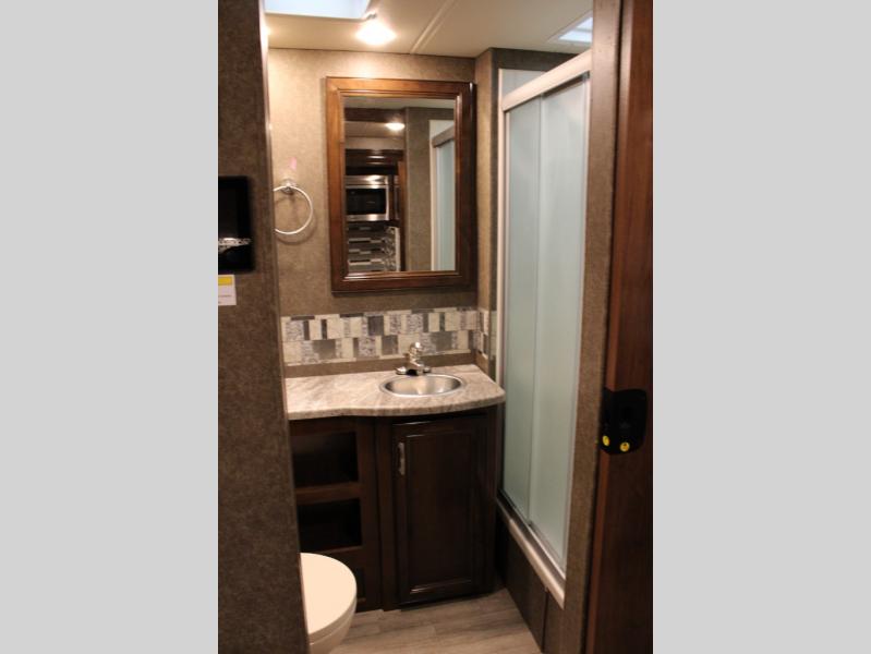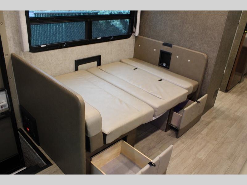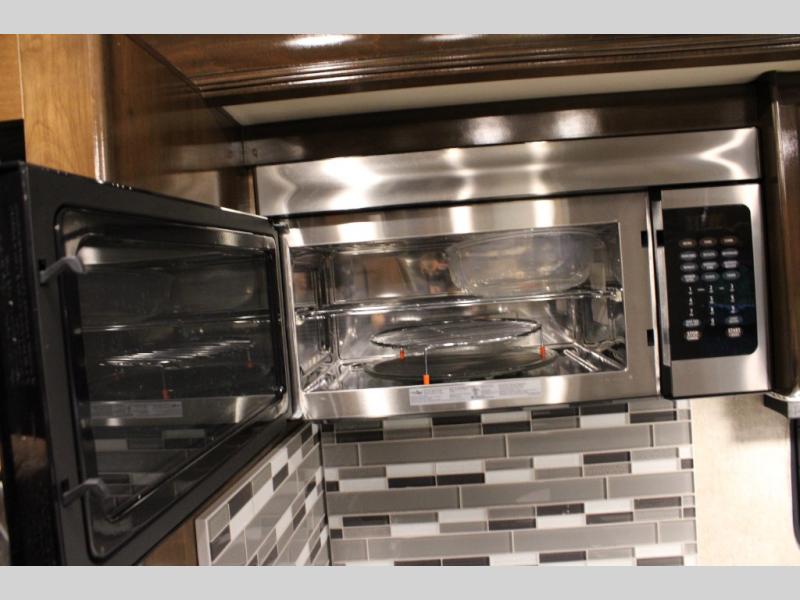 When you're ready to upgrade your RV, choose this Magnitude coach for a truly comfortable unit. You have the option here to choose four wheel drive which I'm sure the driver of the family will love. After you've arrived at your destination you can prepare lunch on the two burner induction cooktop or make something quick in the convection microwave. The kids can climb up into the cab-over bunk sleeping area and watch a movie on the 40" TV that also swivels for when the whole family wants to watch a show. This unit includes a rear bedroom with a Tilt-A-View inclining king bed and 32" TV, and the full bath is ready when you are since the tankless water heater provides hot water where every you go.