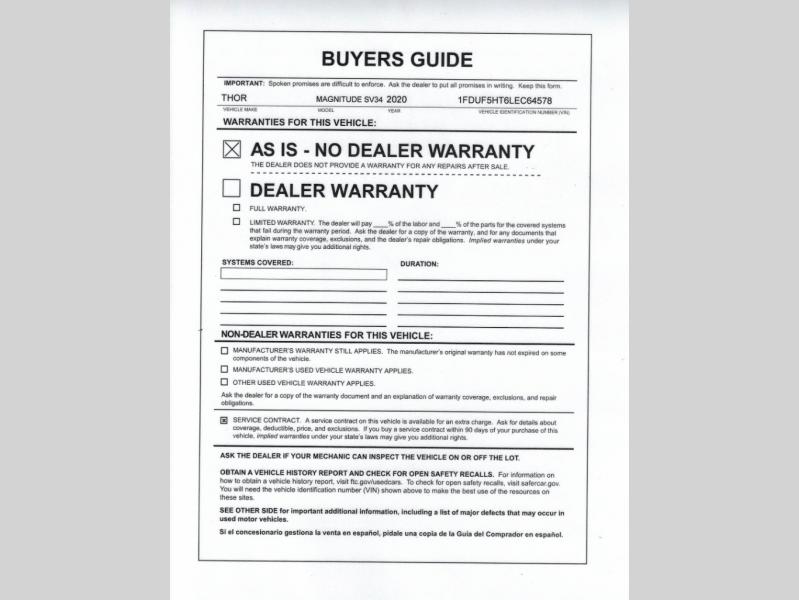 Used 2020 Thor Motor Coach Magnitude SV34 Motor Home Super C - Diesel