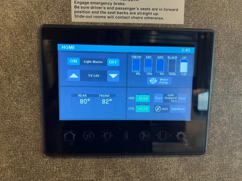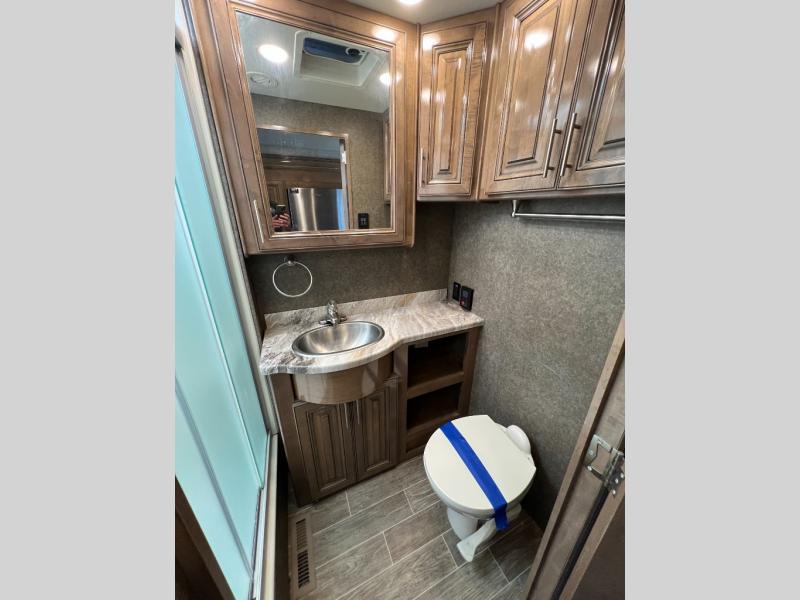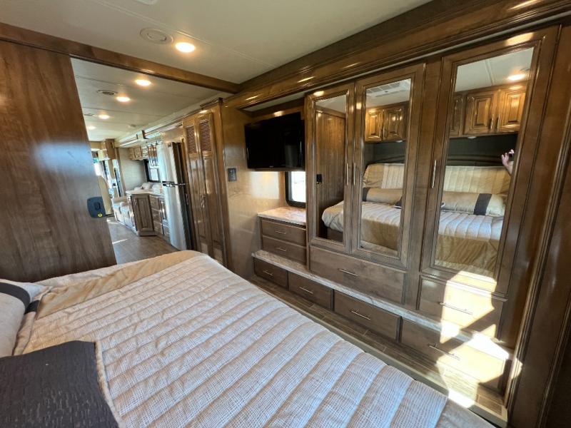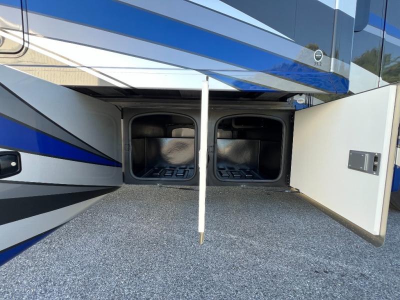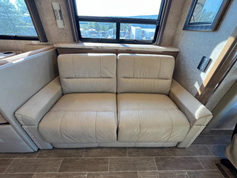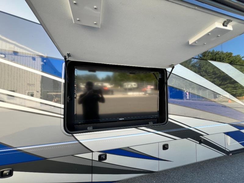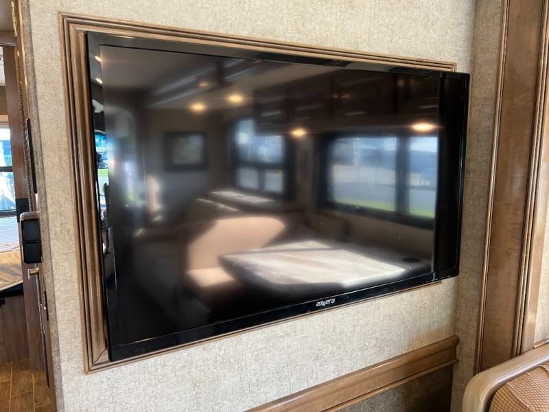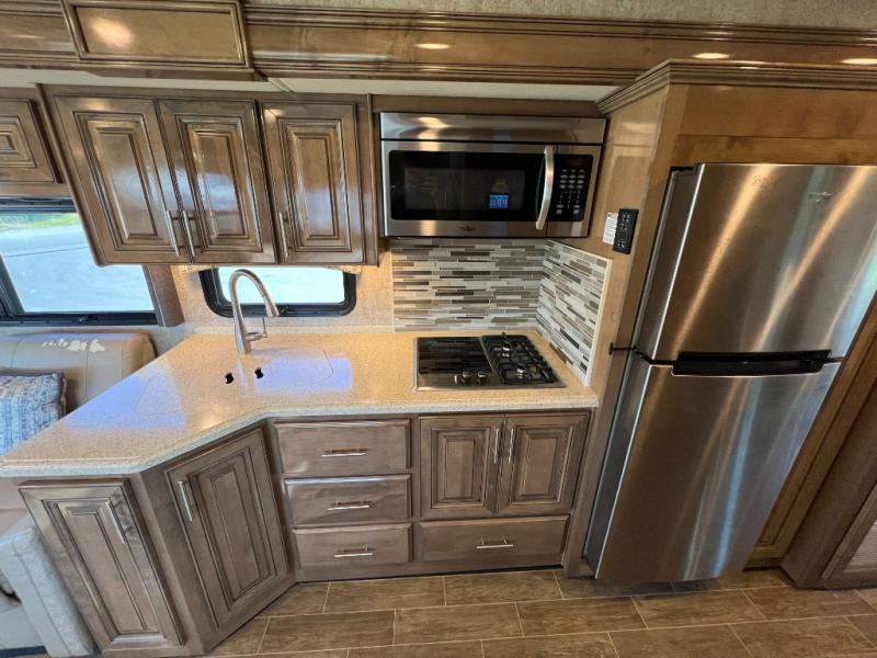 If you are looking for more interior space in your next RV and to include sleeping space for eight people, then this coach provides just that and more with a full wall slide out and a second slide out on the opposite side. In the living area you can relax on the furniture including the swivel captain's chairs and the theater seats. Above the sofa bed there is a retractable 49" TV and along the interior wall you will find a second TV for inside entertainment. Sleeping space can be found on the drop-down overhead cab bunk, on the furniture once set up for bedtime, and in the rear bedroom there is a Tilt-A-View inclining king bed for yourself! You will also love the kitchen appliances, the option to add a washer and dryer, and more!