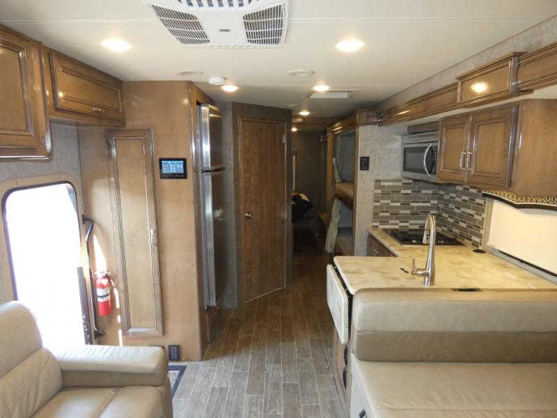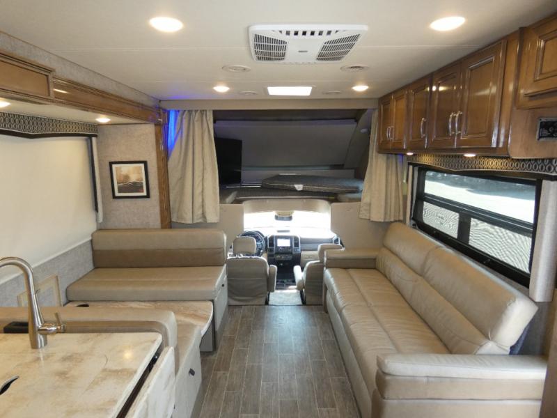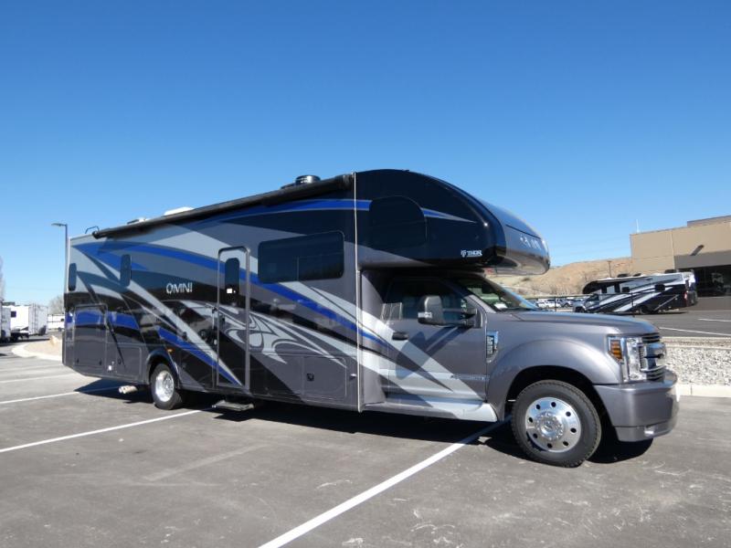 In any Thor Motor Coach Omni Super C diesel, you will find a motorhome that was built with the style and comfort of a class A RV while still giving you the power of a F-550 chassis and a 6.7L PowerStroke engine. They are constructed with a welded tubular aluminum roof and sidewall cage, a premium one-piece TPO roof, and an invisible front paint protection to give you a motorhome that will last a lifetime. Convenient features like the patio power awning with integrated LED lights, the AM/FM radio equipped with the SYNC, and the mobile eye driver assistance--collision and lane departure warning are just a few that will keep you impressed with these motorhomes comfort and quality.