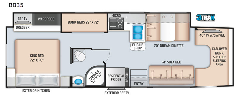 | TV Info | BR 32" LED TV, CAB 40" LED TV, Ext. 32" LED TV |