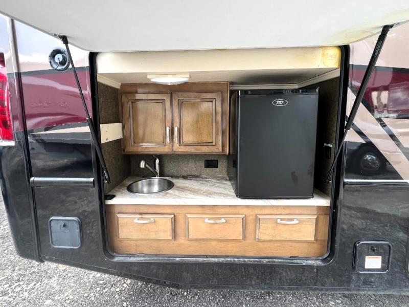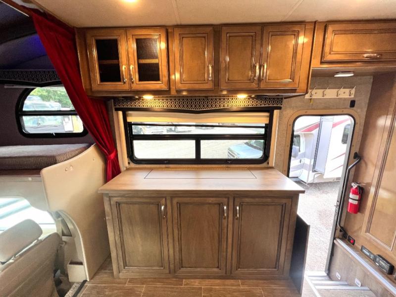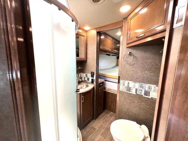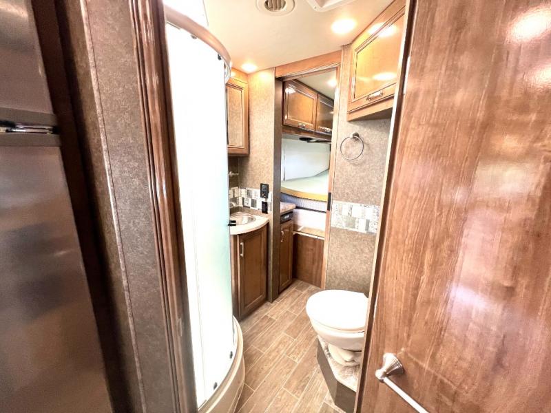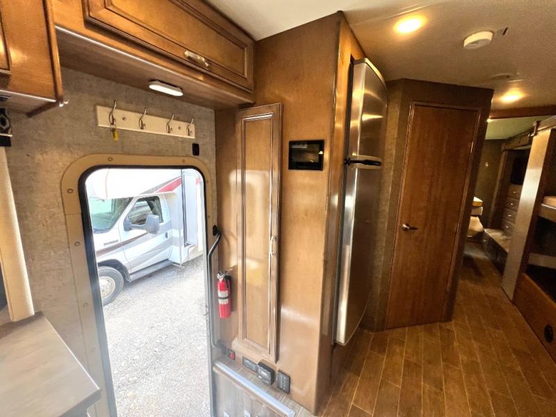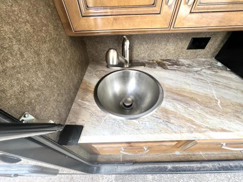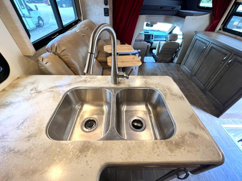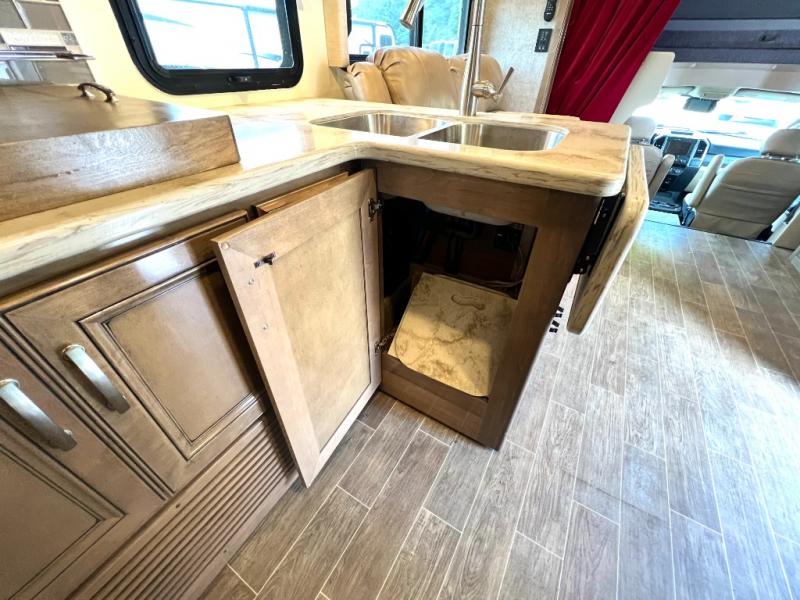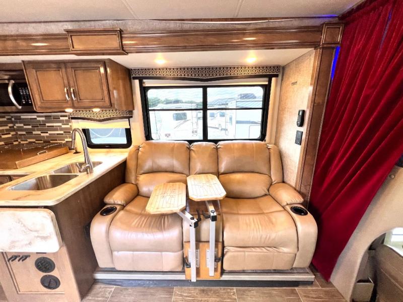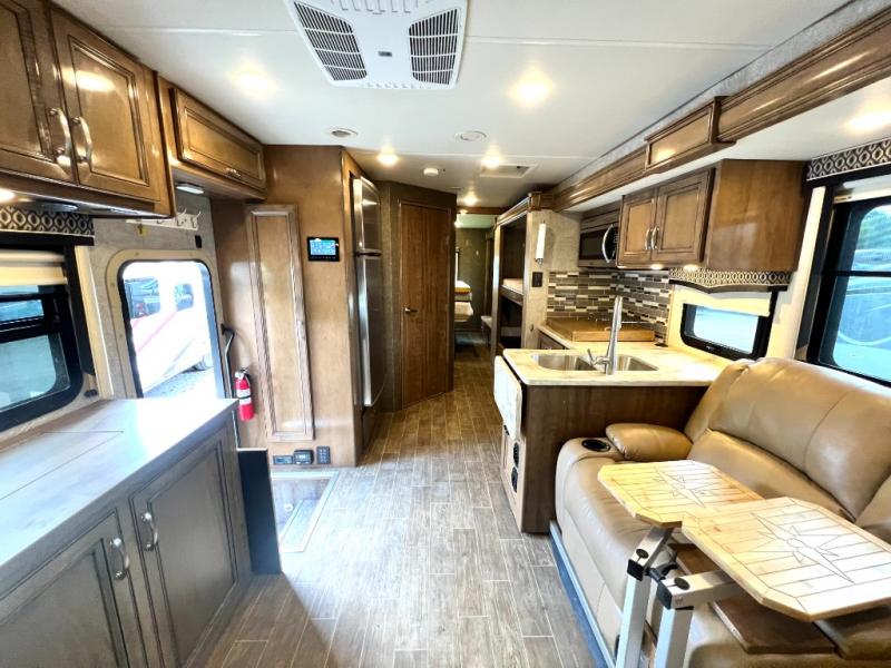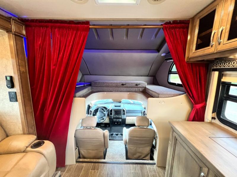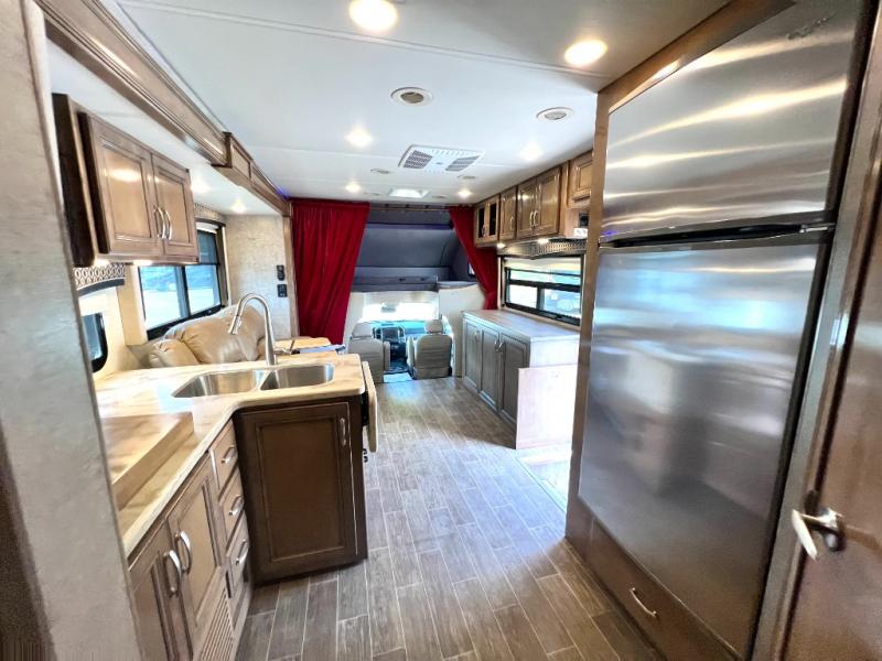 In any Thor Motor Coach Omni Super C diesel, you will find a motorhome that was built with the style and comfort of a class A RV while still giving you the power of a F-550 chassis and a 6.7L PowerStroke engine. They are constructed with a welded tubular aluminum roof and sidewall cage, a premium one-piece TPO roof, and an invisible front paint protection to give you a motorhome that will last a lifetime. Convenient features like the patio power awning with integrated LED lights, the AM/FM radio equipped with the SYNC with MyFord option, and the mobile eye driver assistance--collision and lane departure warning are just a few that will keep you impressed with these motorhomes comfort and quality.