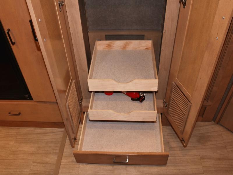 Love staying organized? You’ll appreciate the abundant interior storage throughout the coach, along with the cleverly designed wardrobe space in the bedroom. A well-appointed bathroom and available washer/dryer hookup mean you can extend your getaways even longer—without sacrificing comfort or cleanliness.